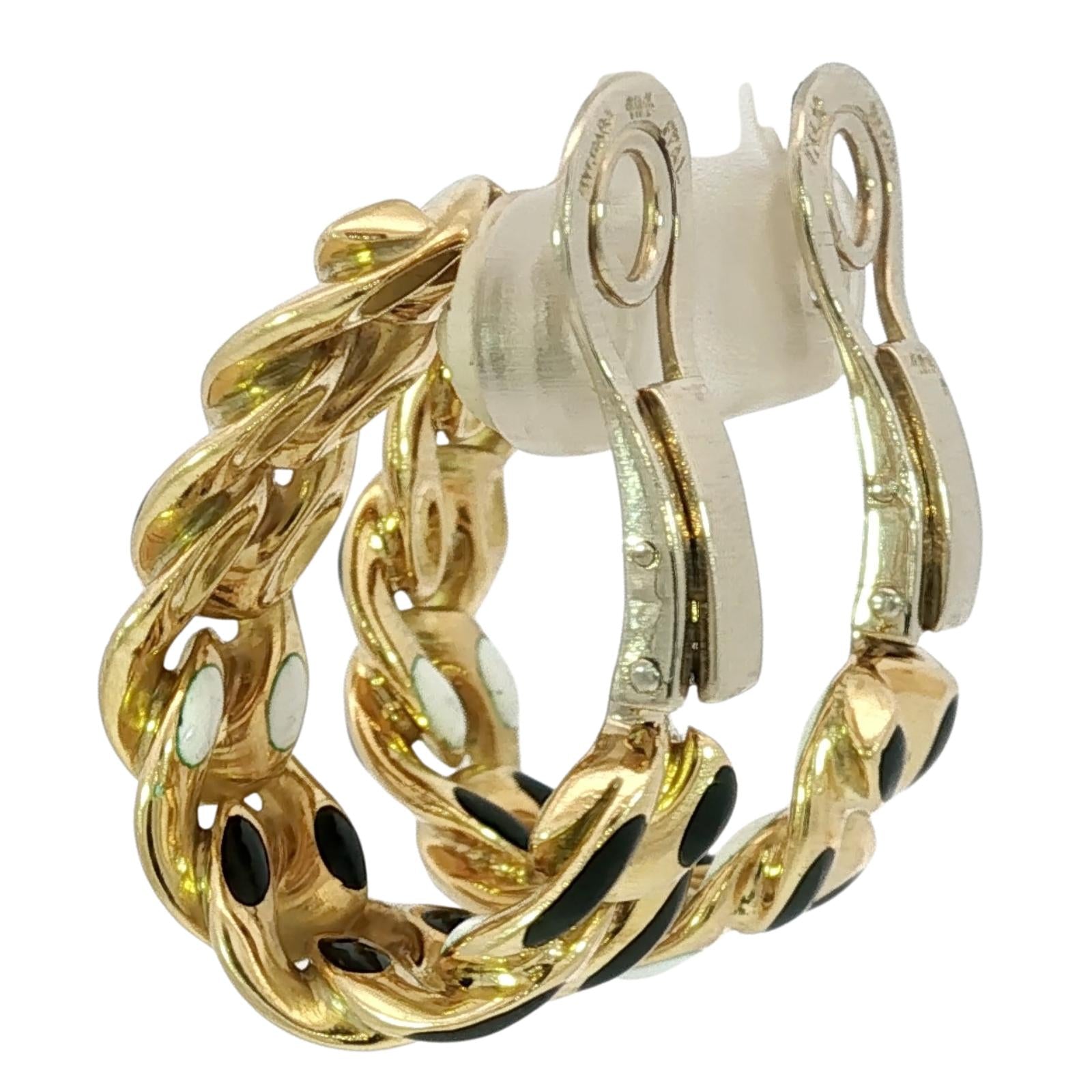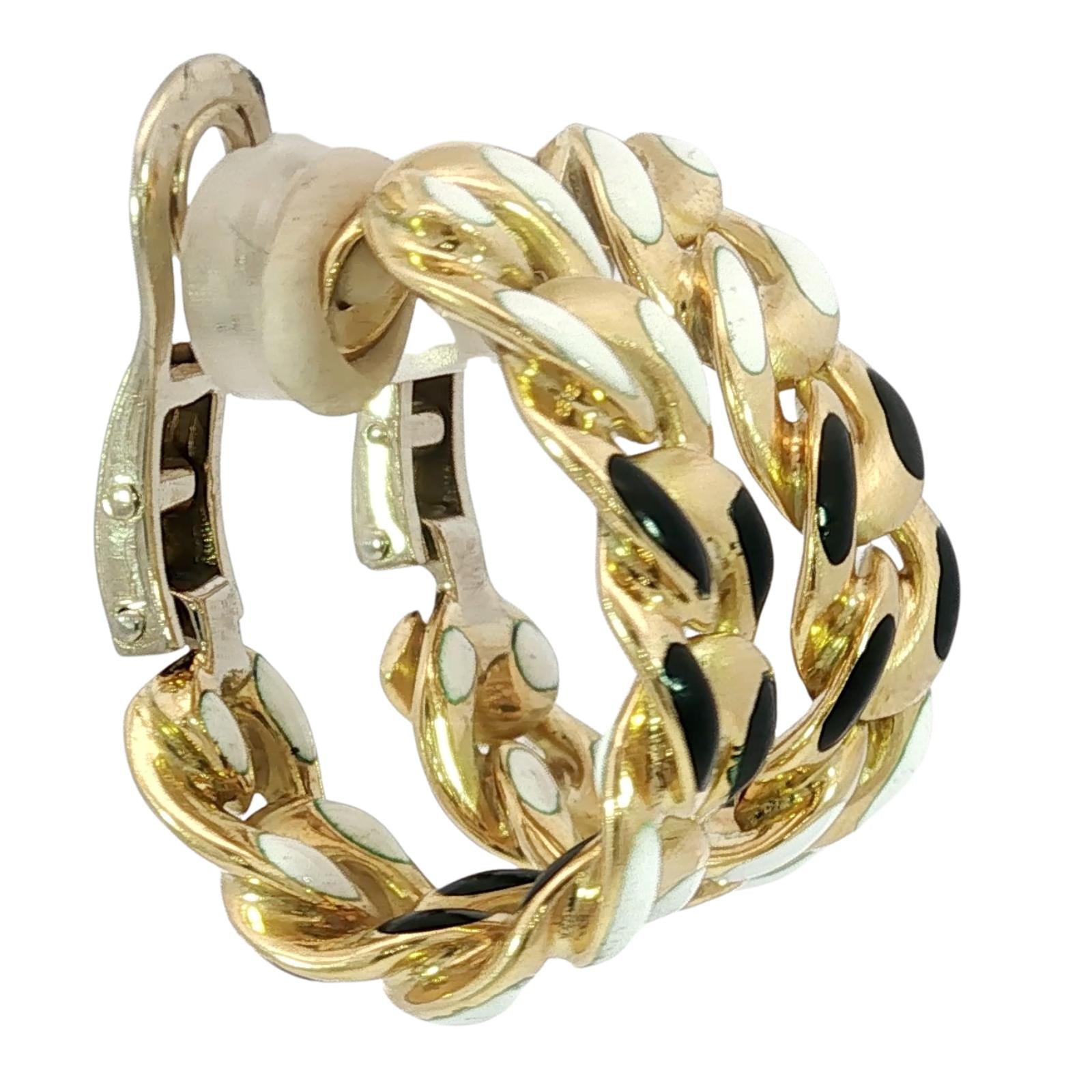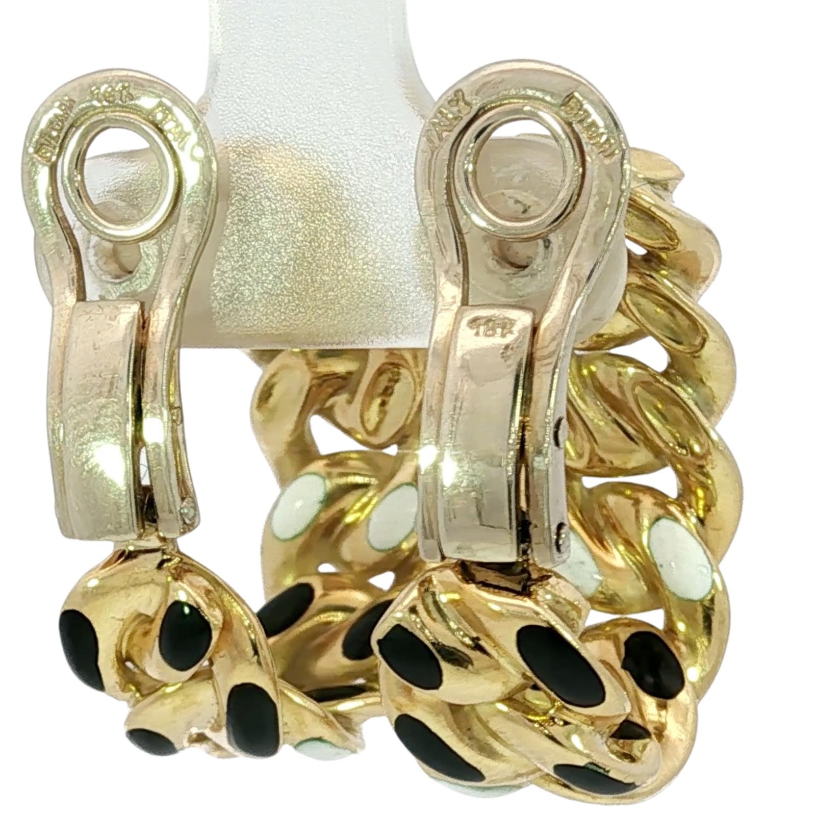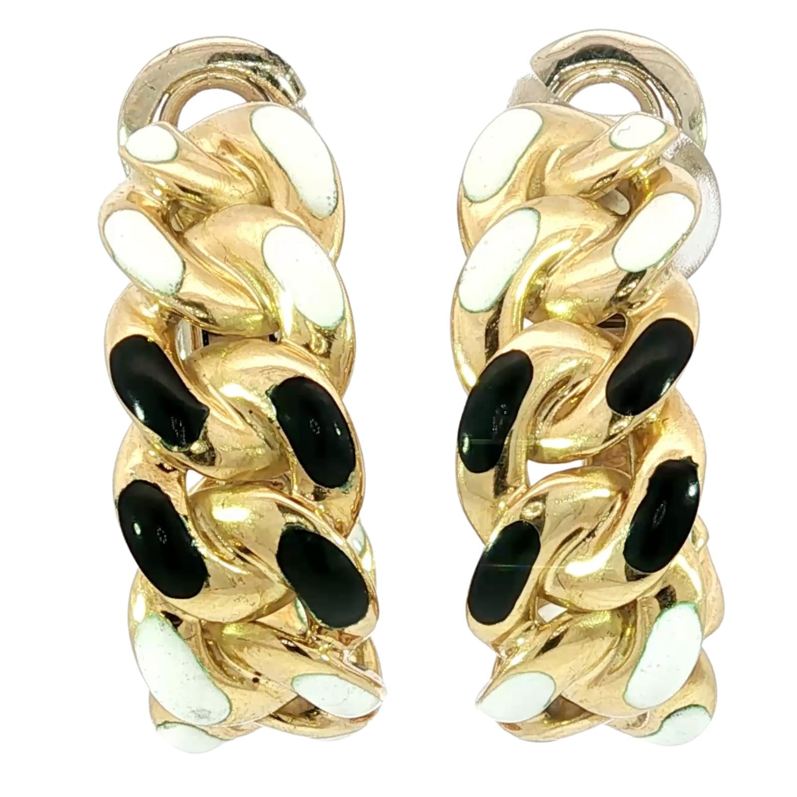 Bulgari Enamel Cuban Link Earrings Clip Ons Black White Enamel 18K Yellow Gold