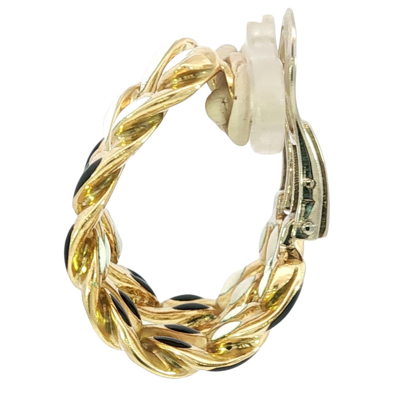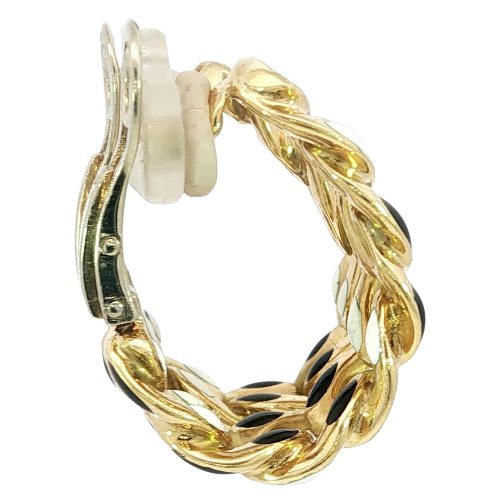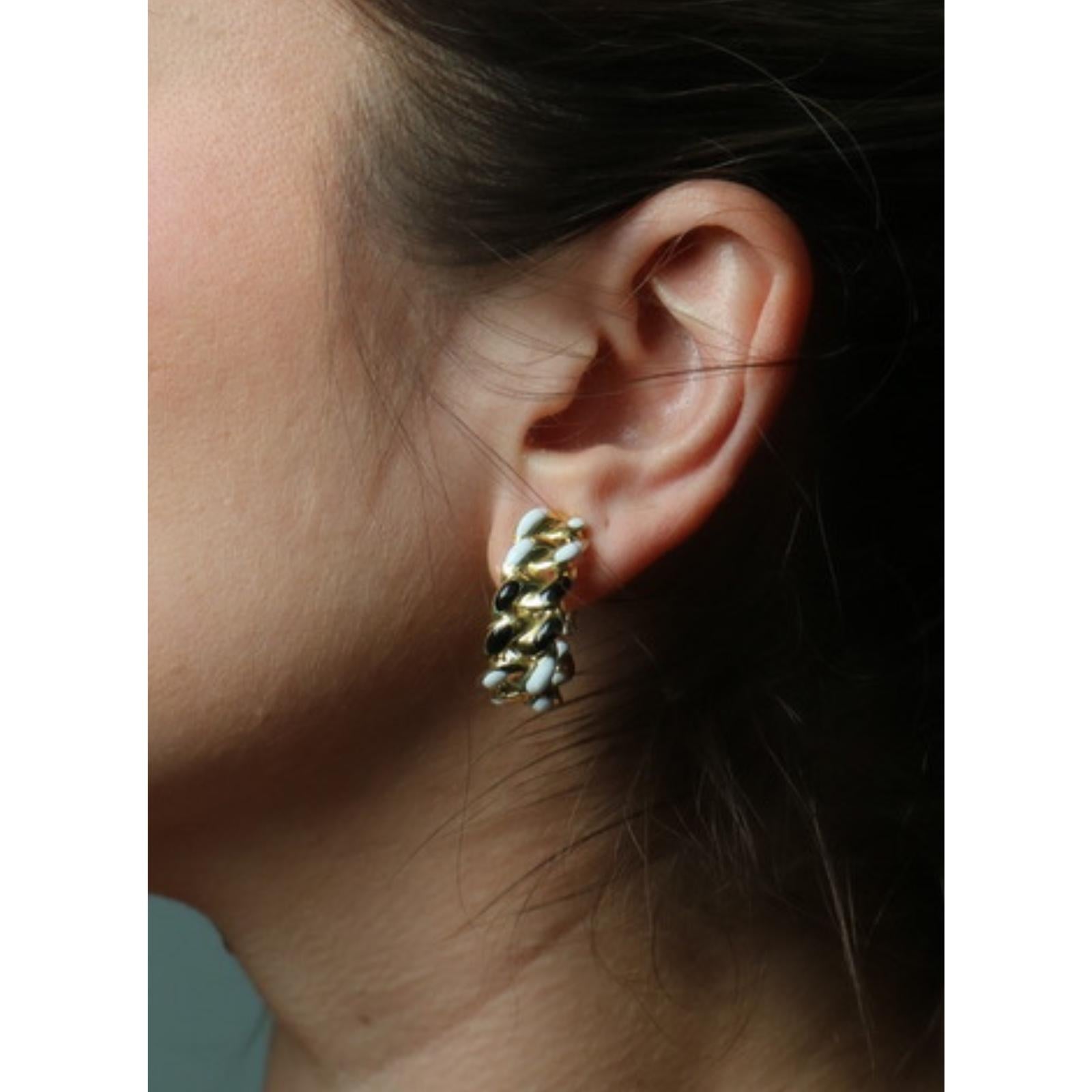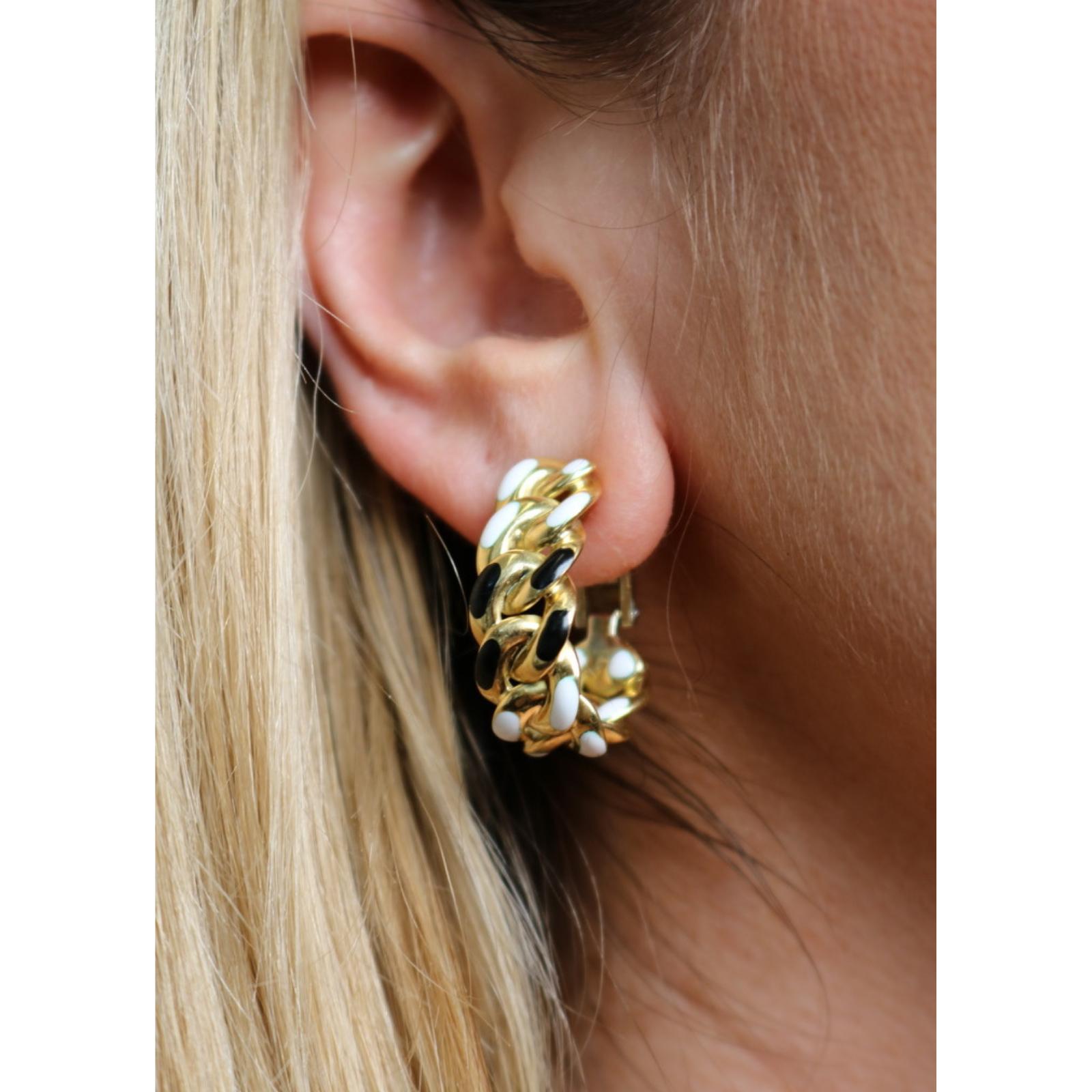 Bulgari Enamel Cuban Link Earrings Clip Ons Black White Enamel 18K Yellow Gold