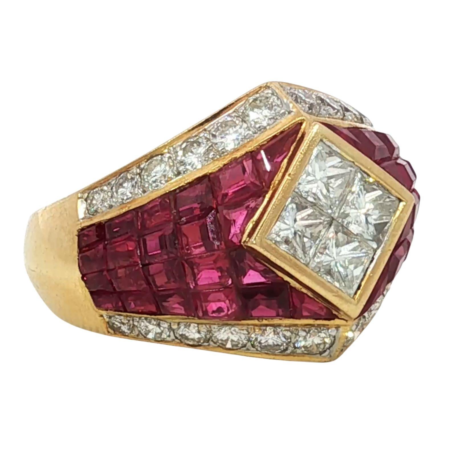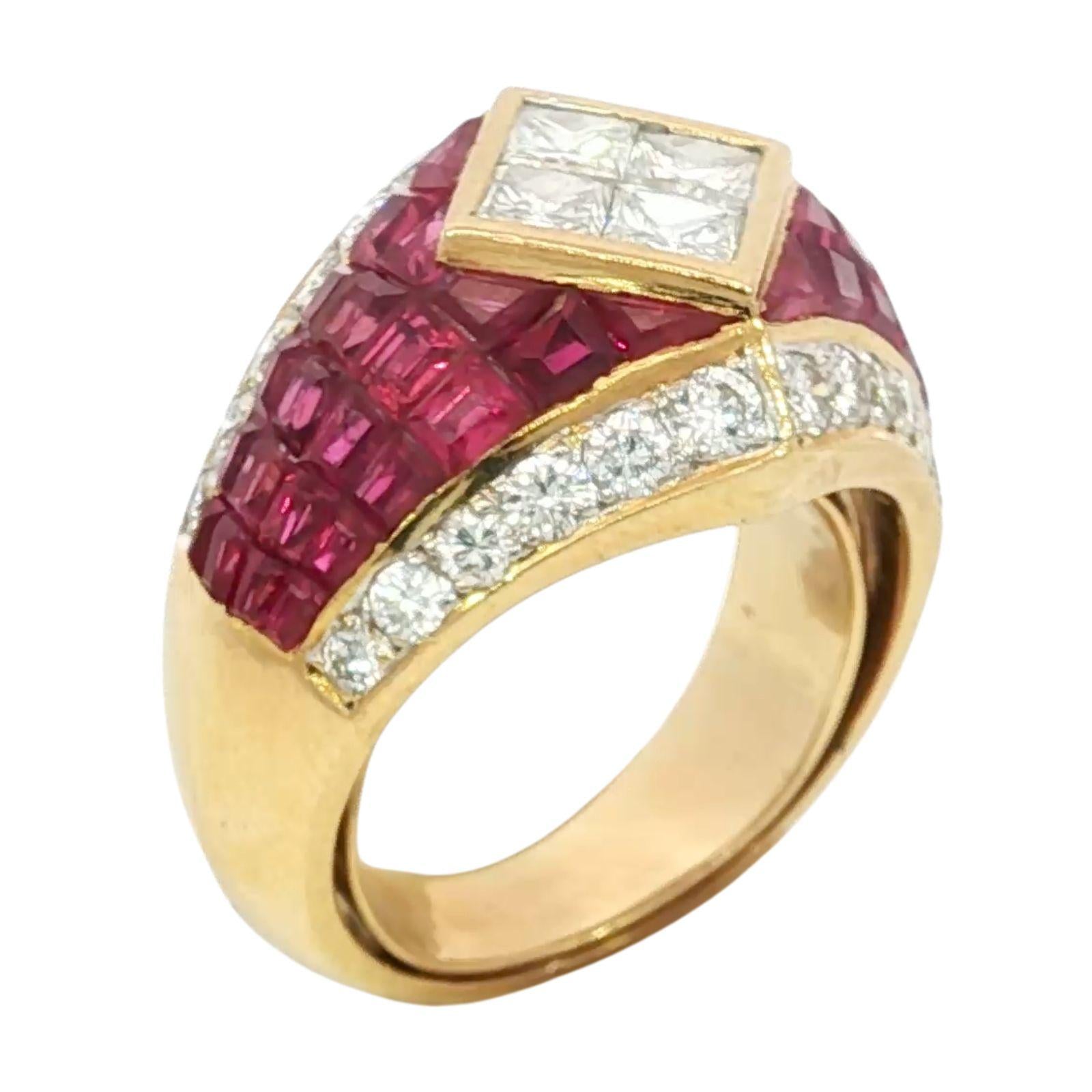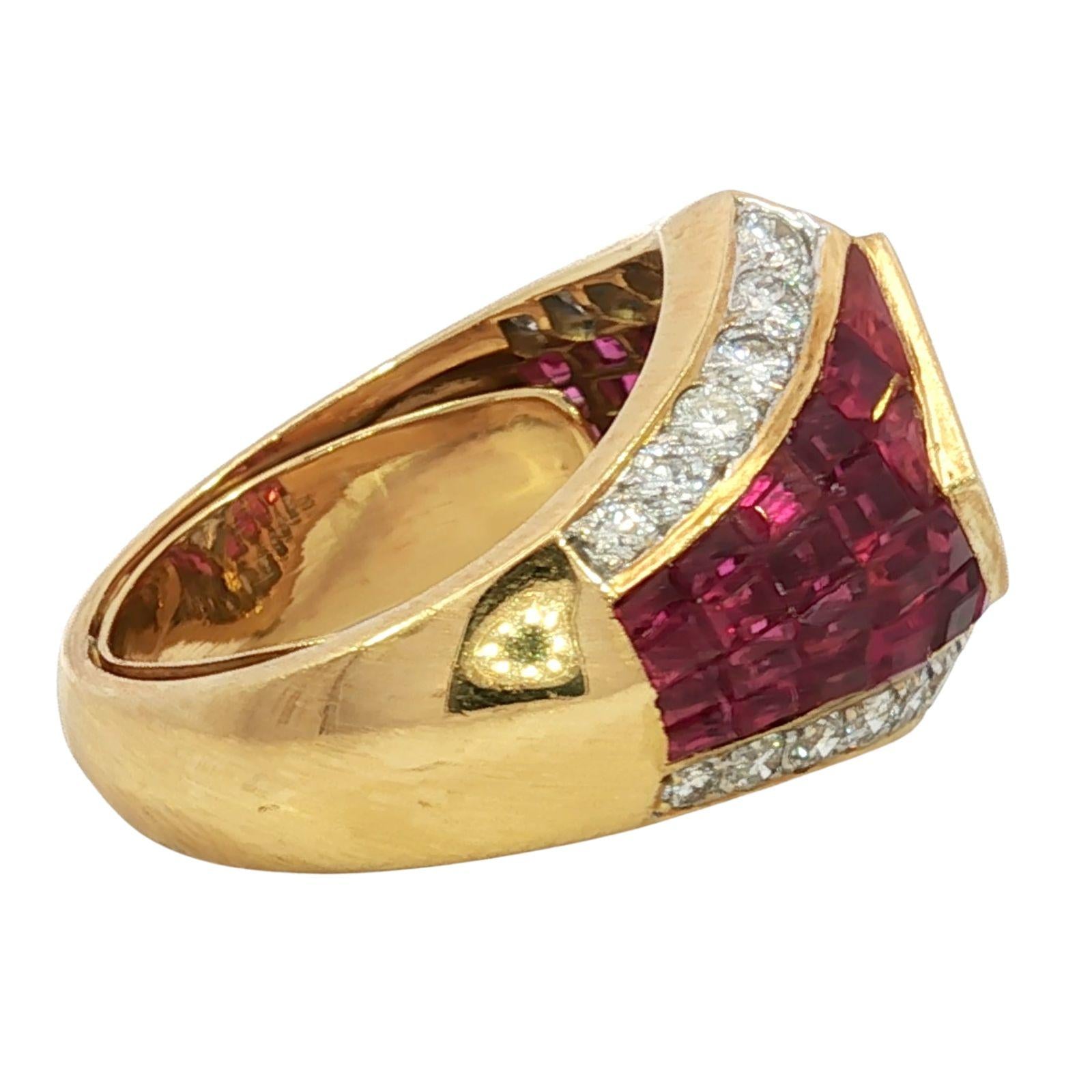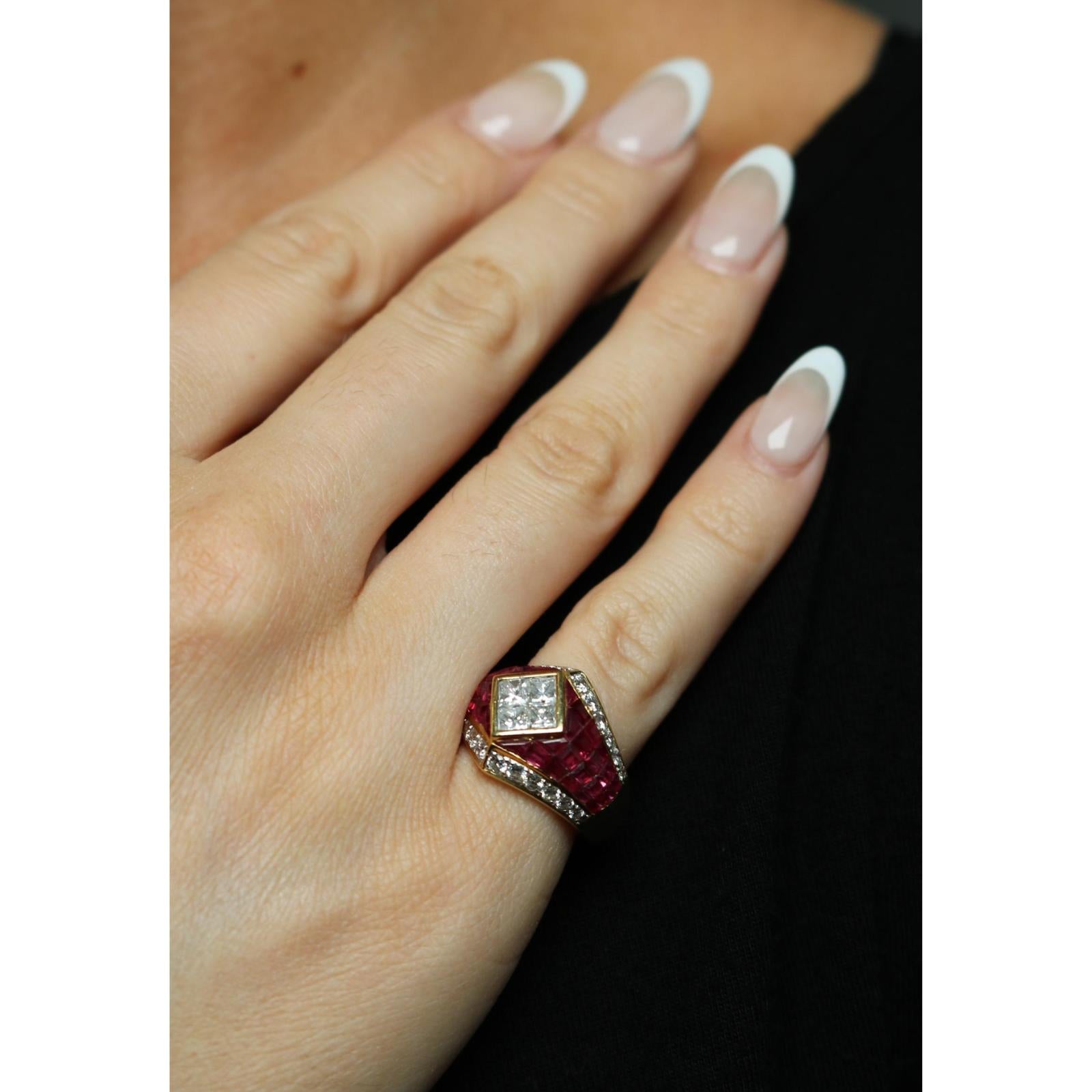 Estate 18K Invisible Set Ruby Diamond Ring Yellow Gold Gold ~3.96ctw
