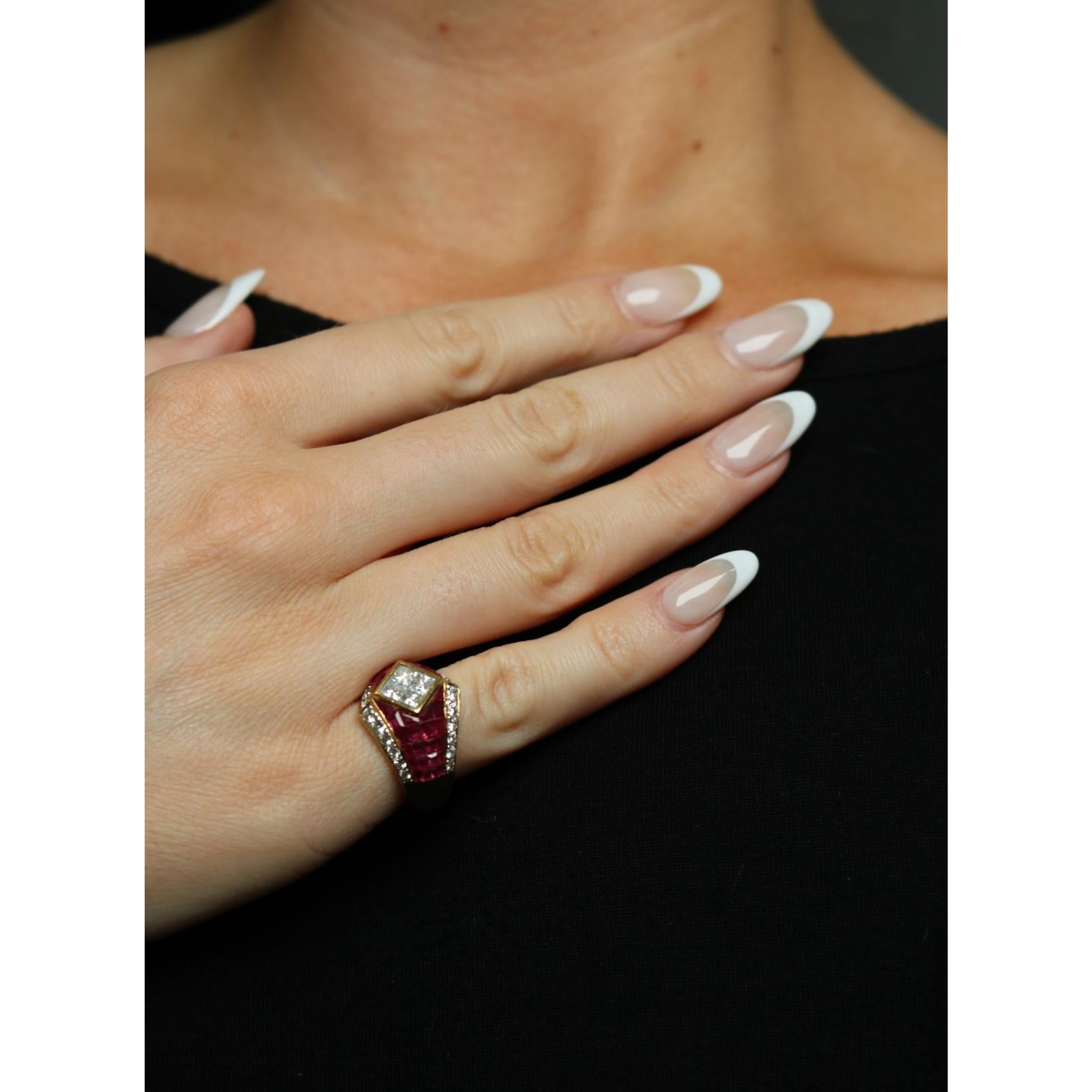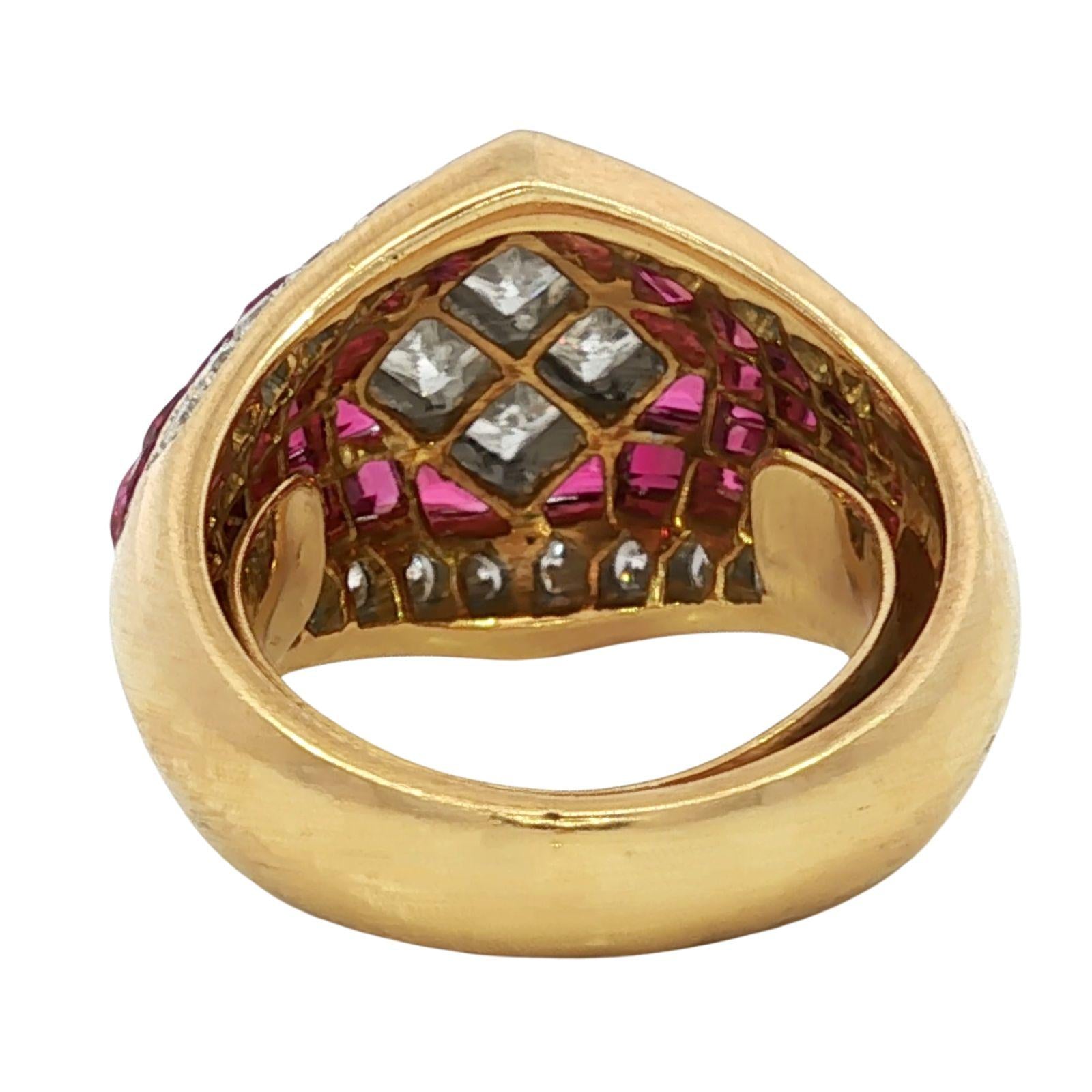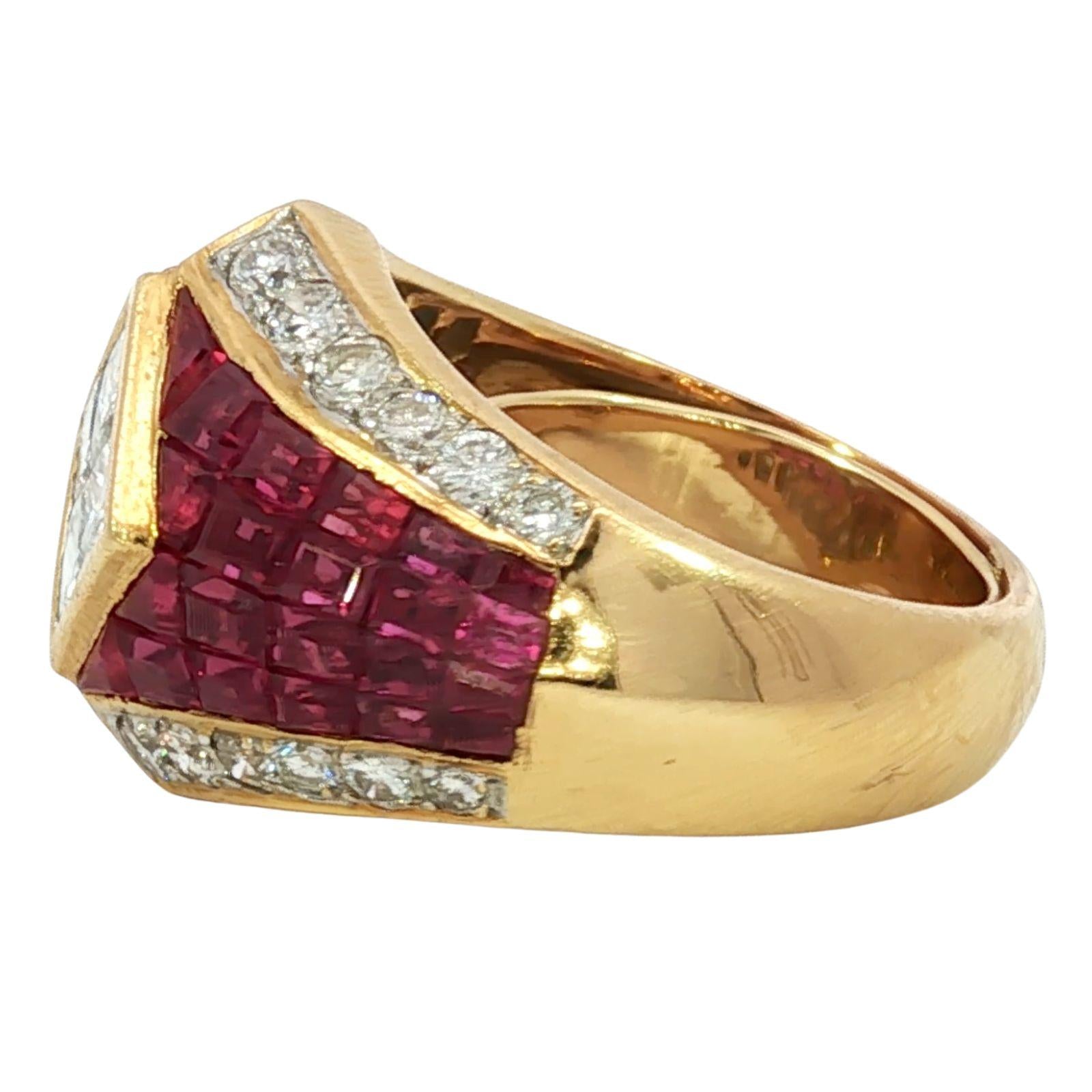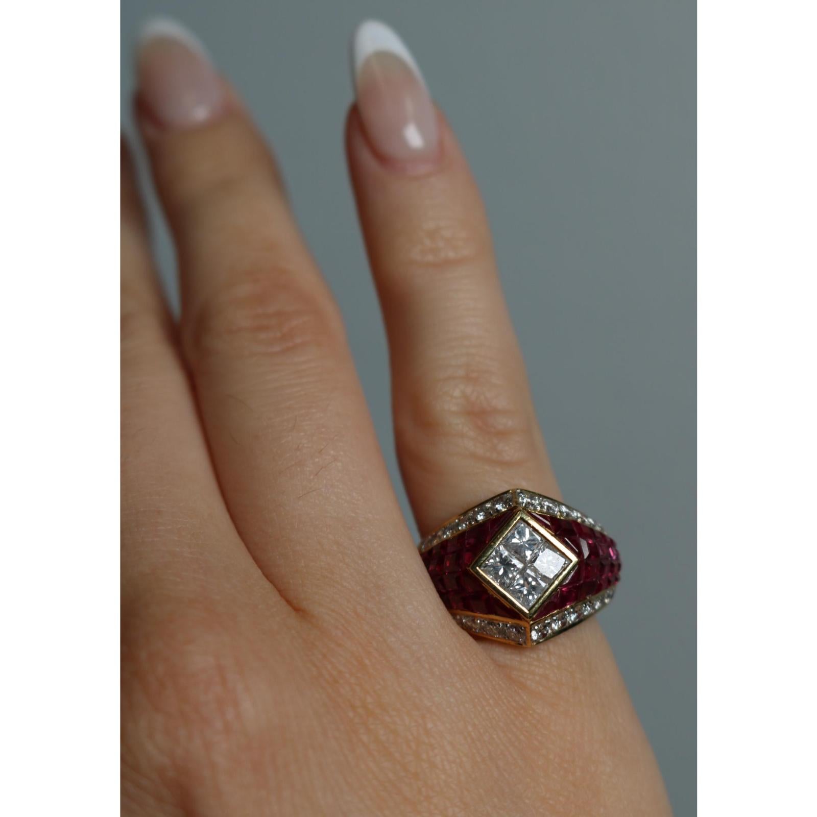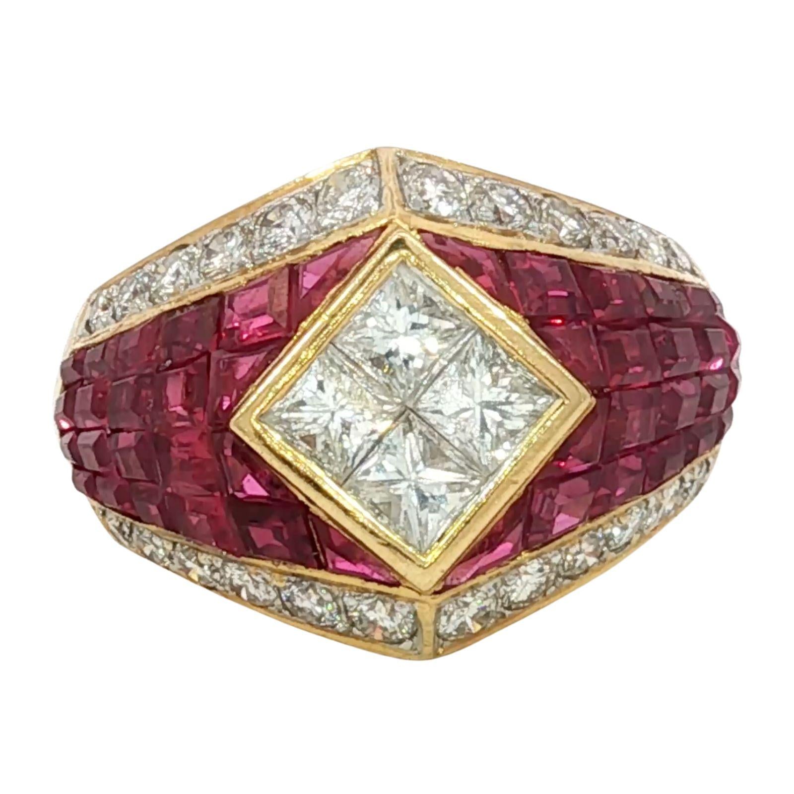 Estate 18K Invisible Set Ruby Diamond Ring Yellow Gold Gold ~3.96ctw