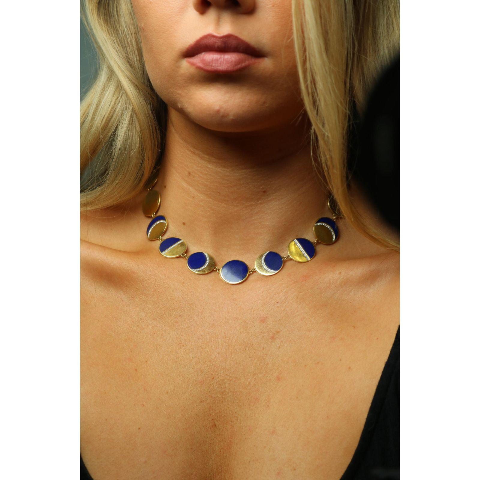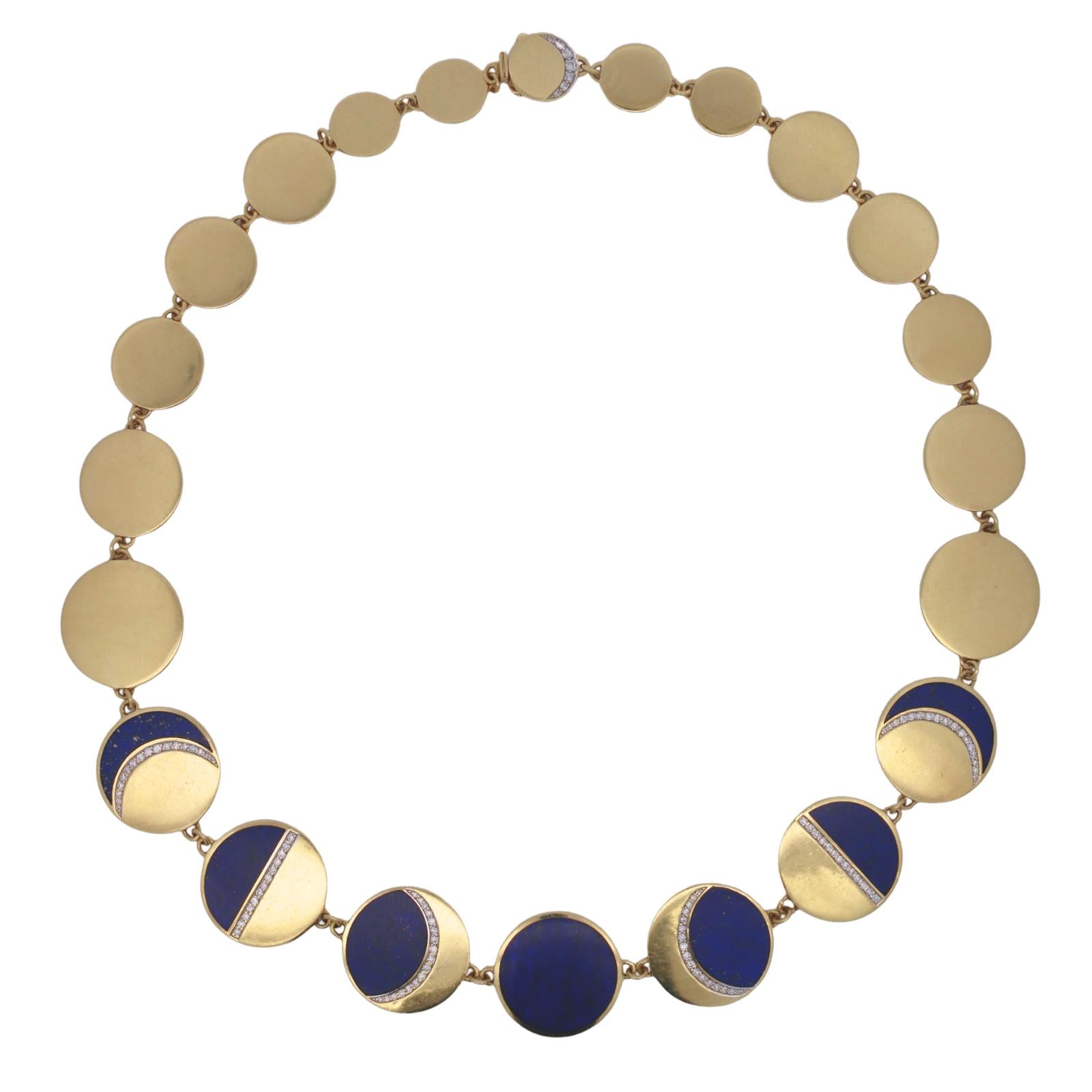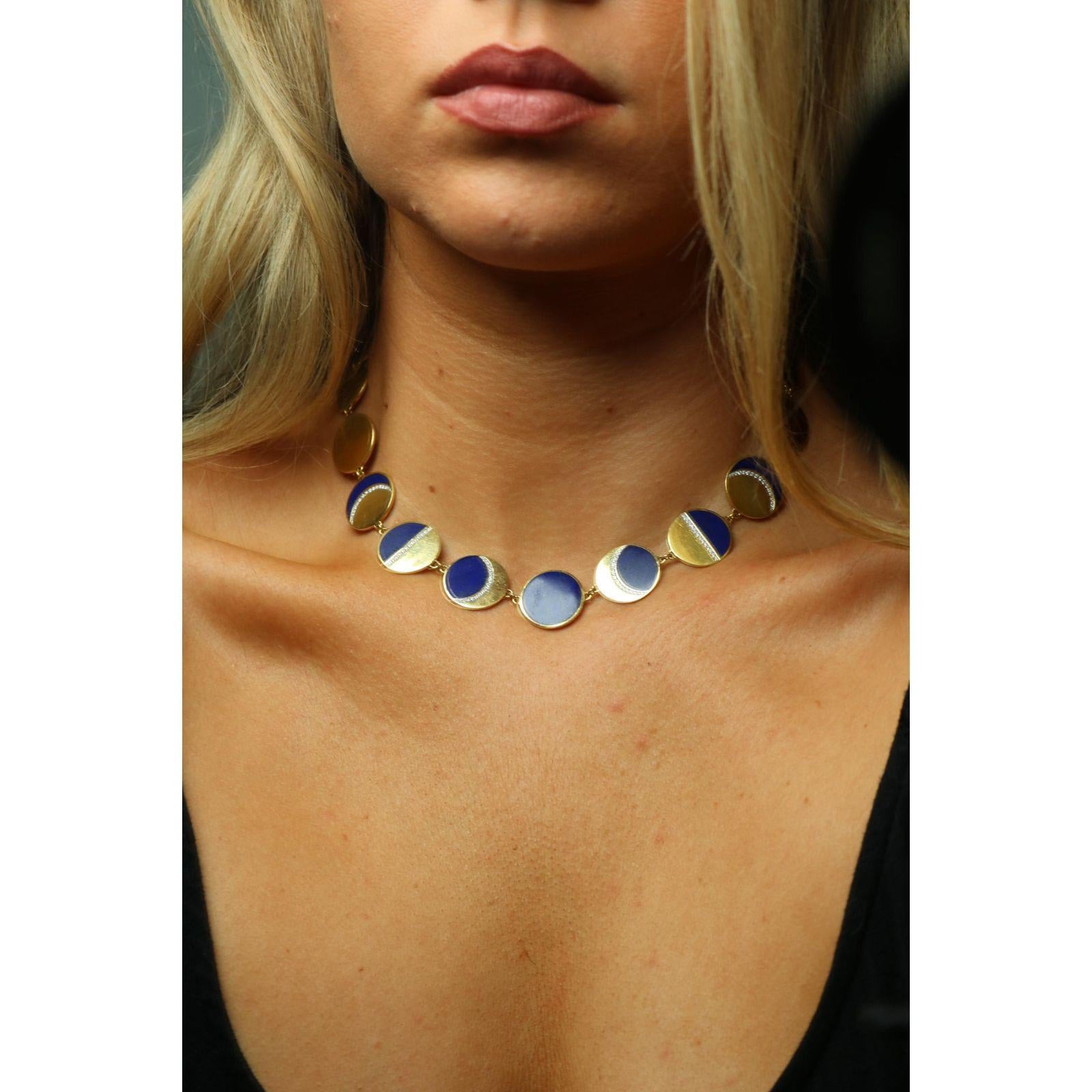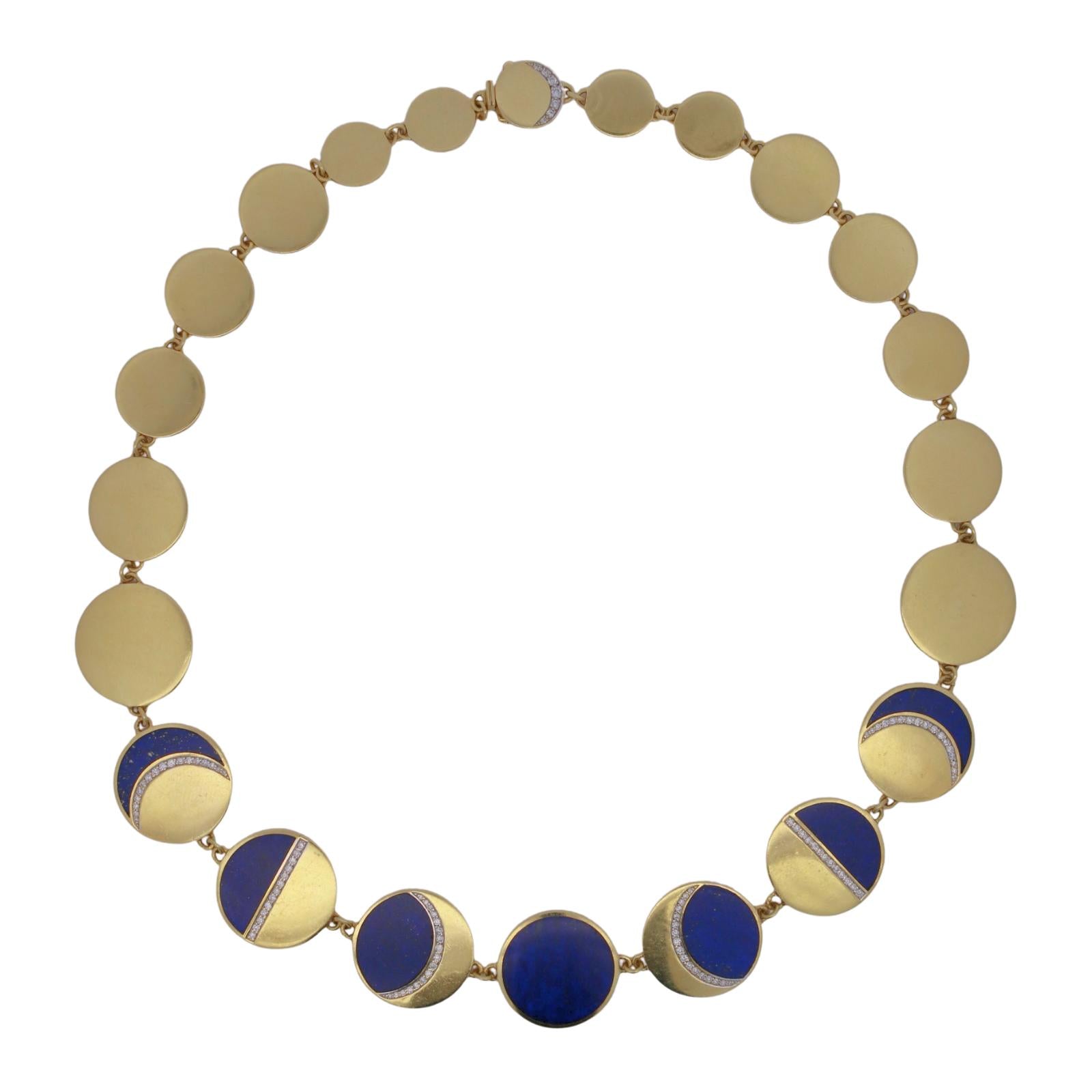 Estate 18K Moon Necklace by Pamela Love 'Moon Phase' Lapis Diamonds Yellow Gold