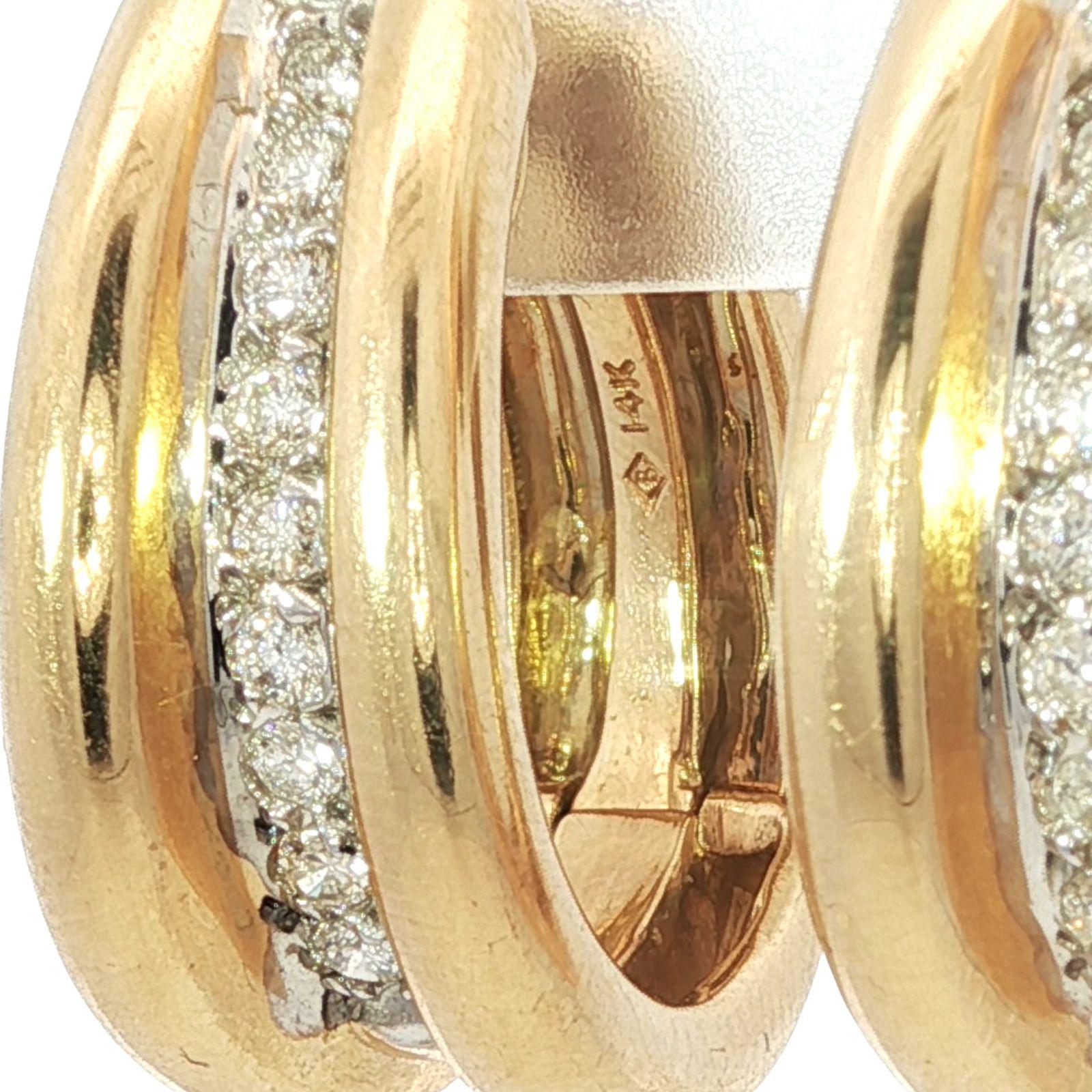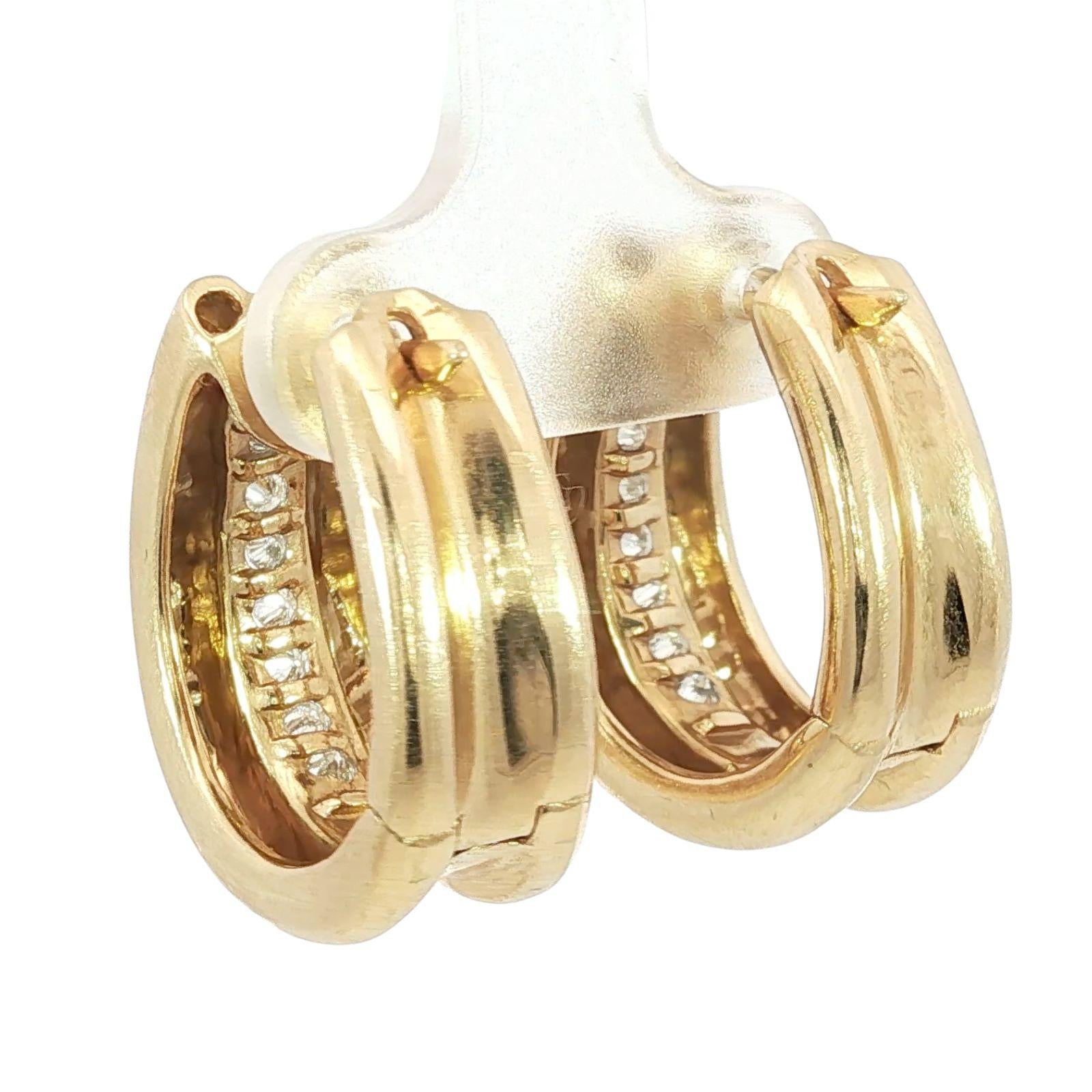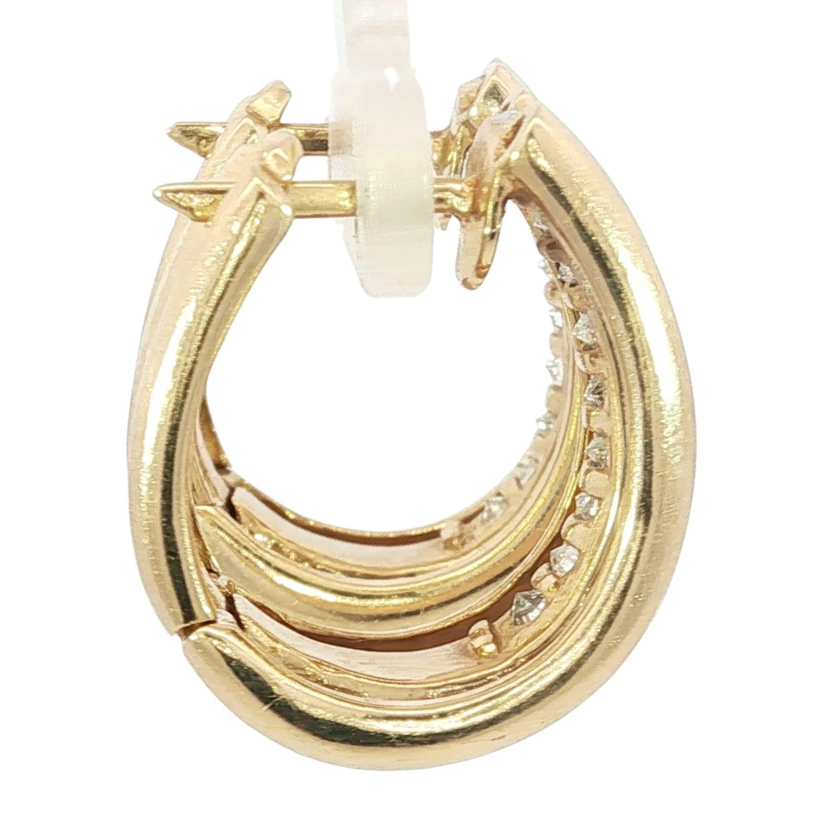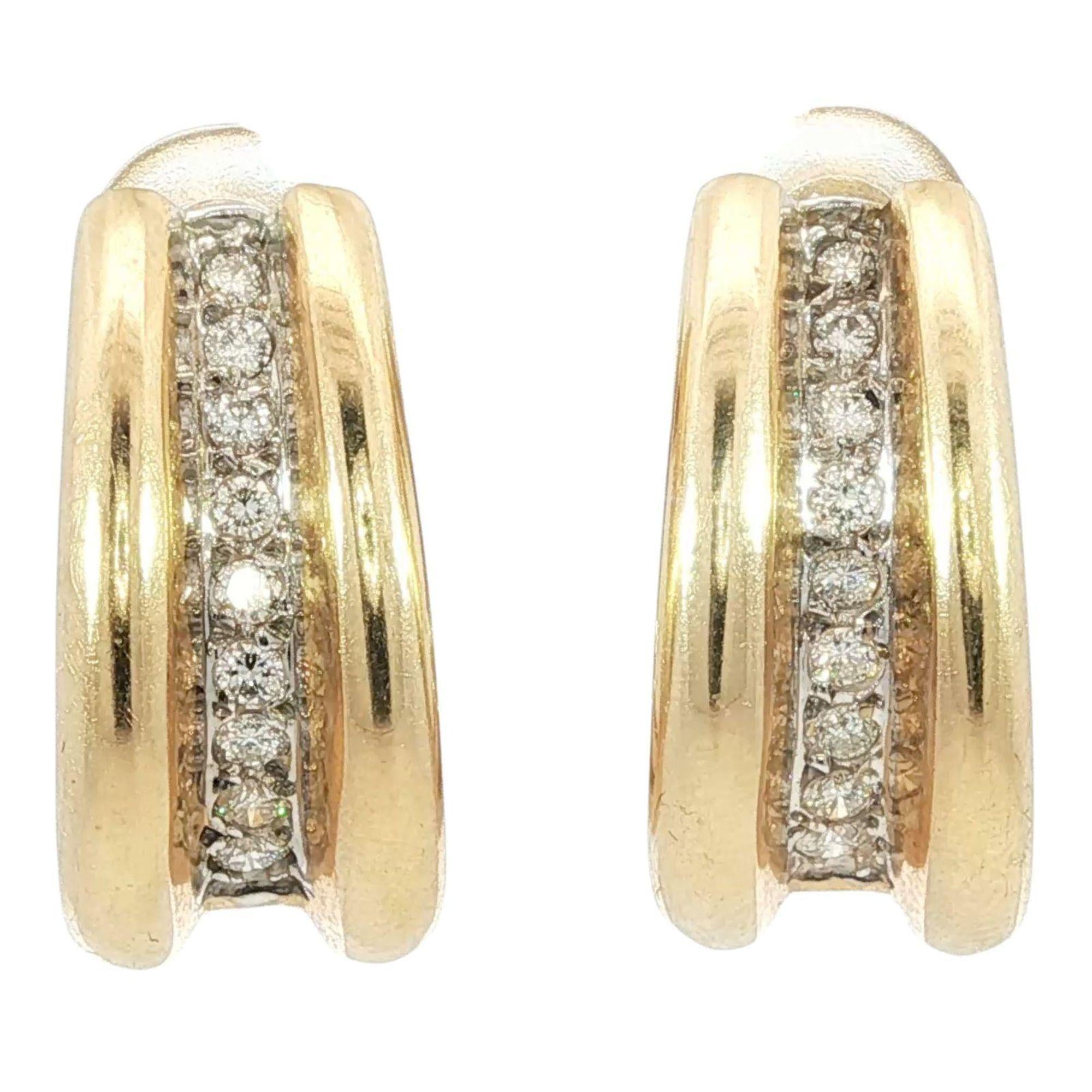 Vintage Diamond Huggie Hoop Earrings 14K Yellow Gold ~0.44ctw