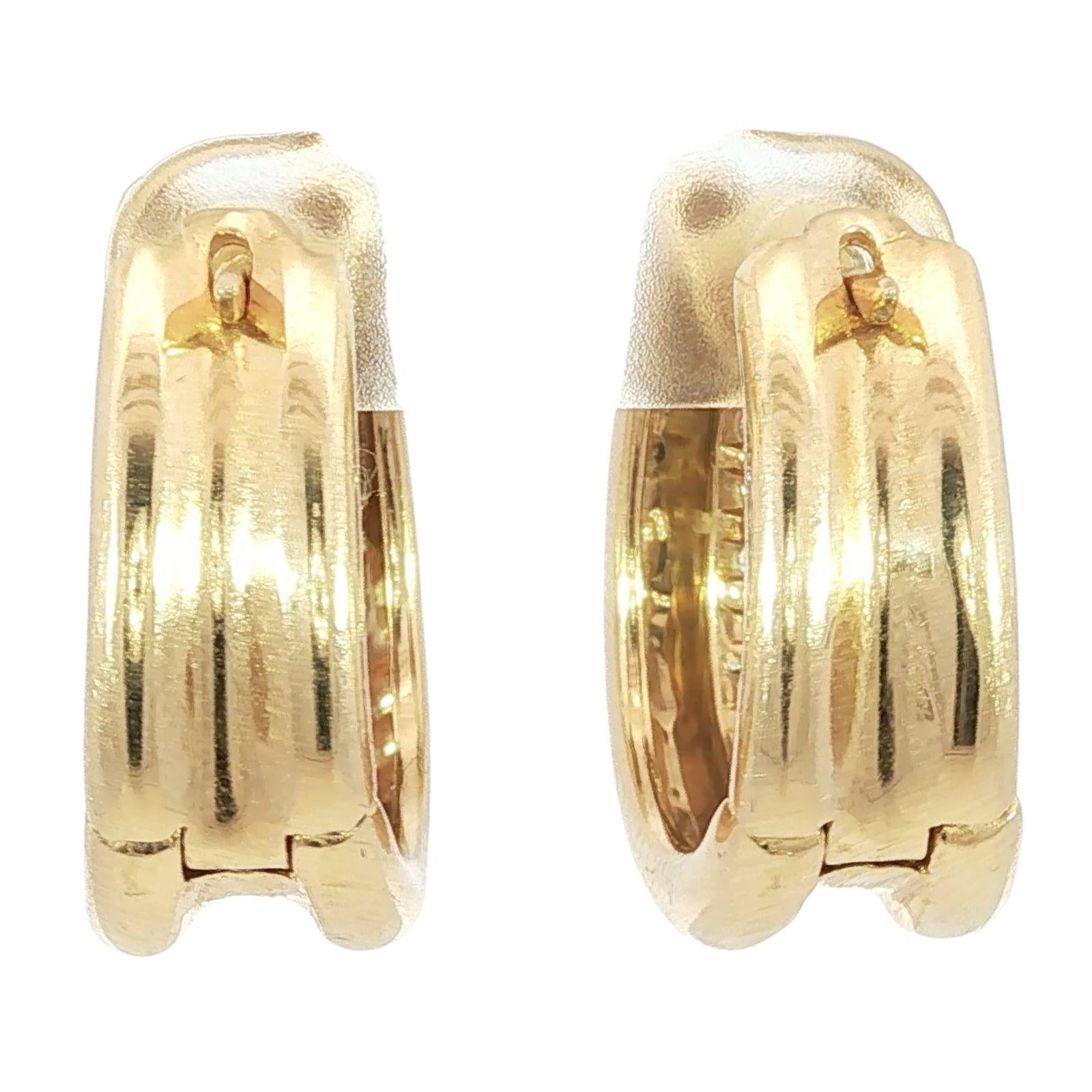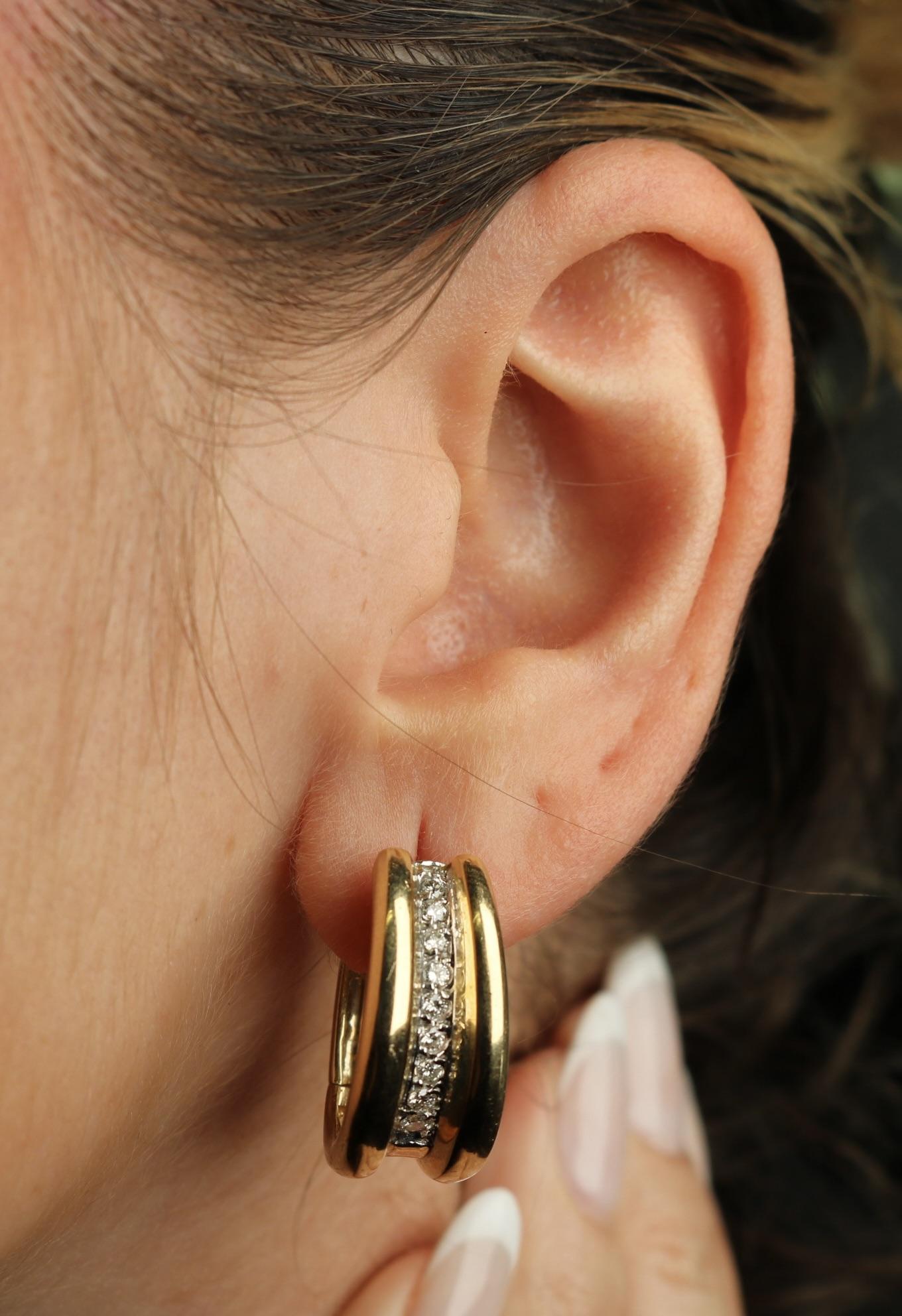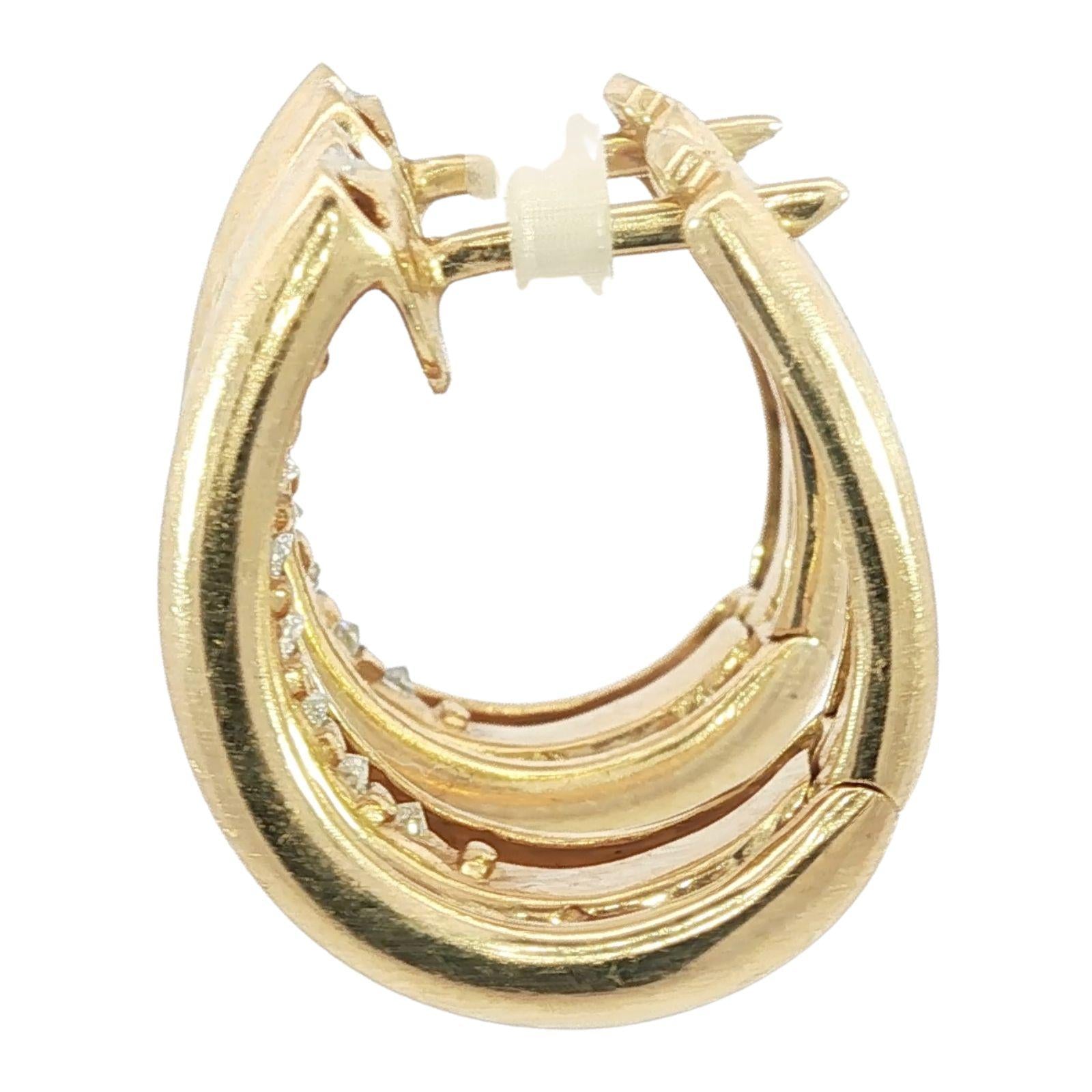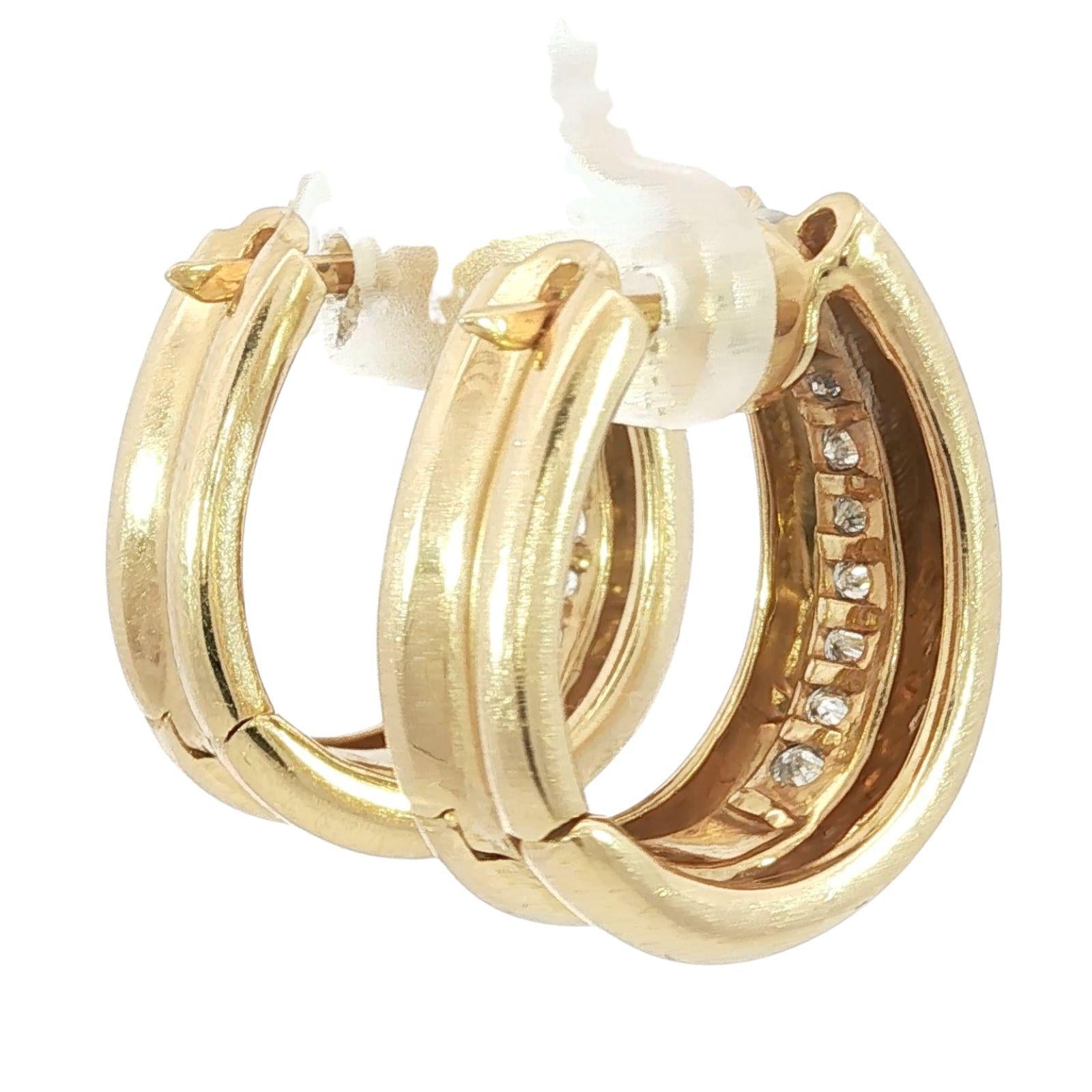 Vintage Diamond Huggie Hoop Earrings 14K Yellow Gold ~0.44ctw