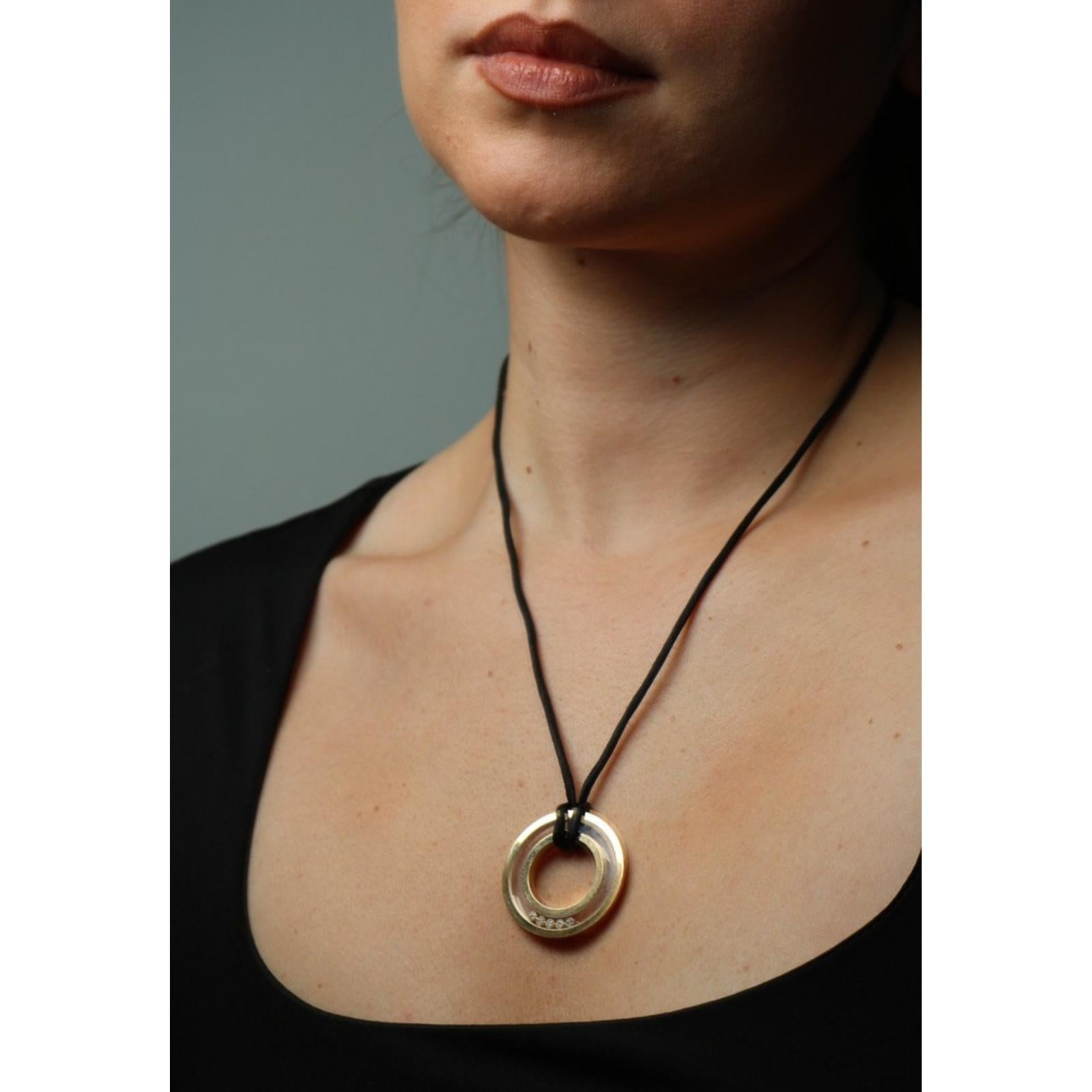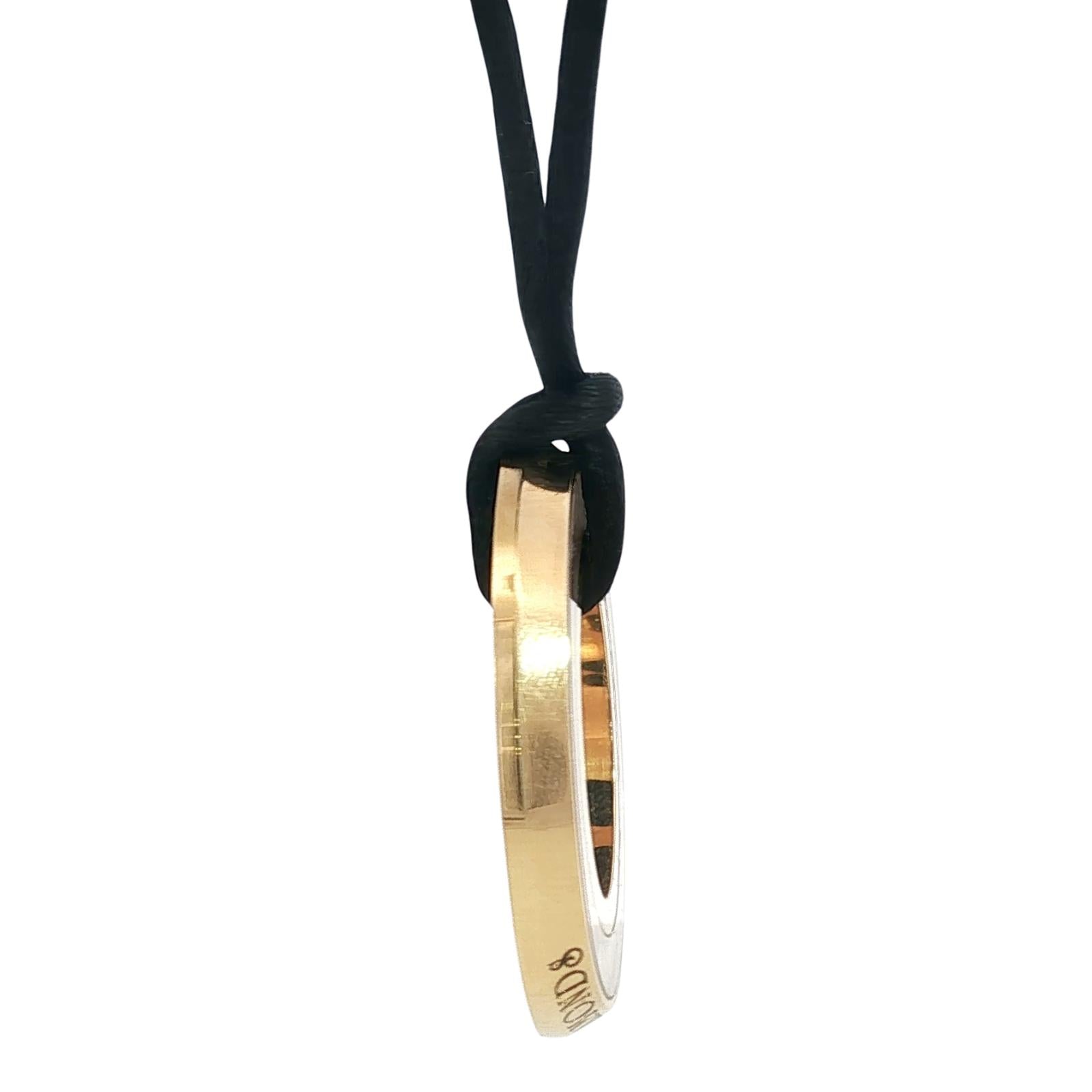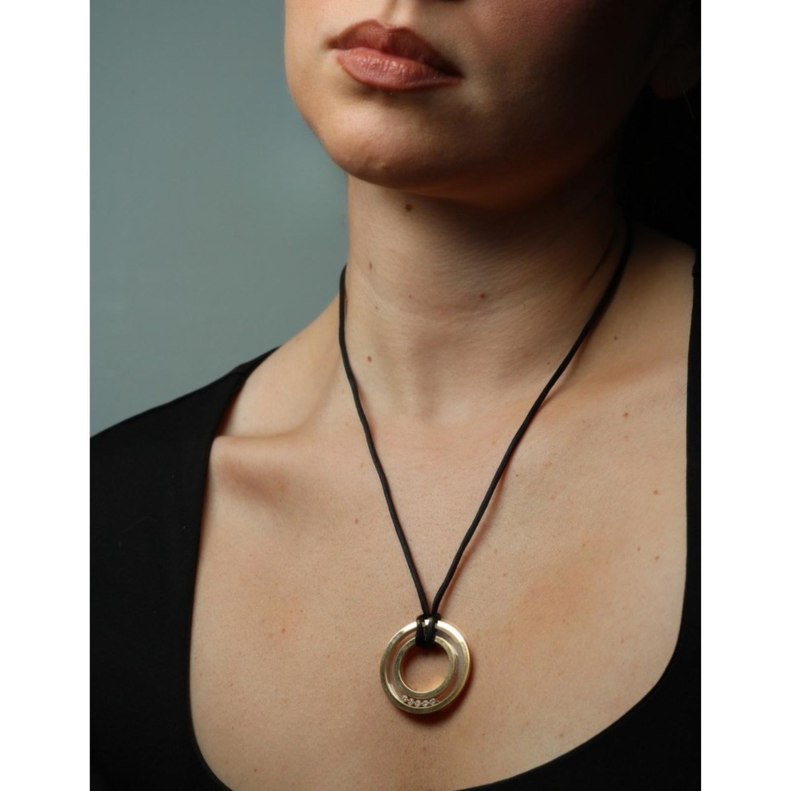 The pendant hangs from a sleek black cord, offering a modern contrast to the gold and diamonds. It’s an effortlessly chic combination that feels as at home with an evening dress as it does with a simple blouse.