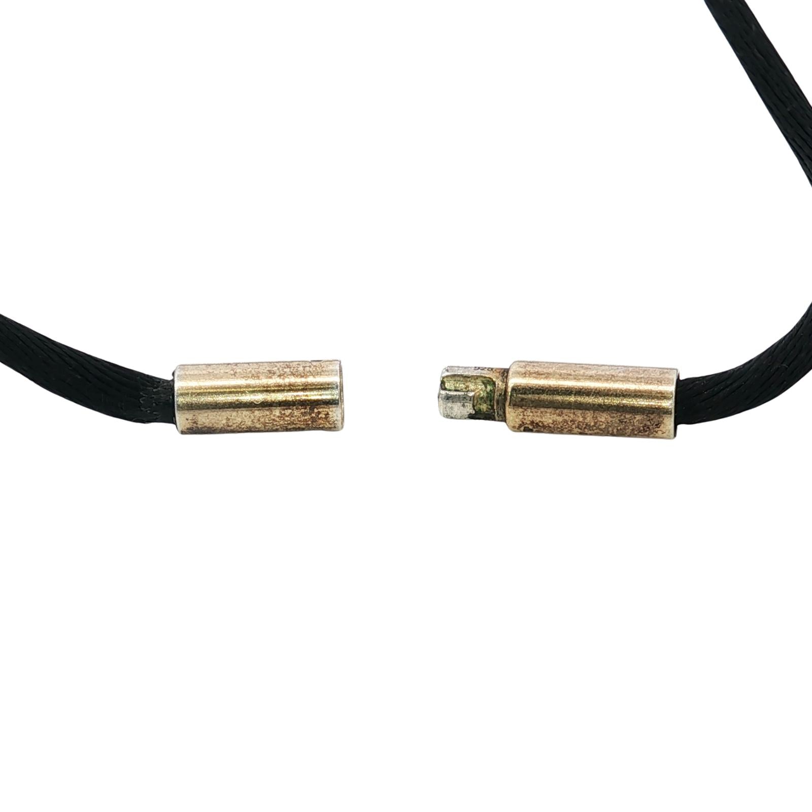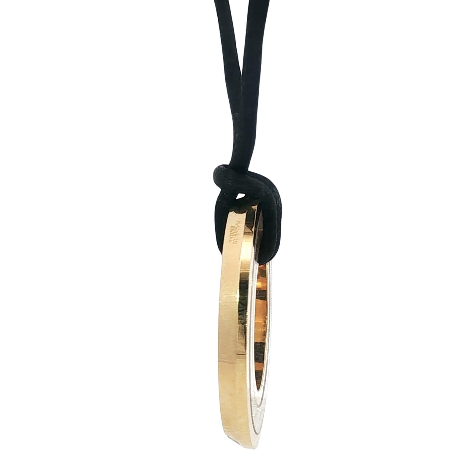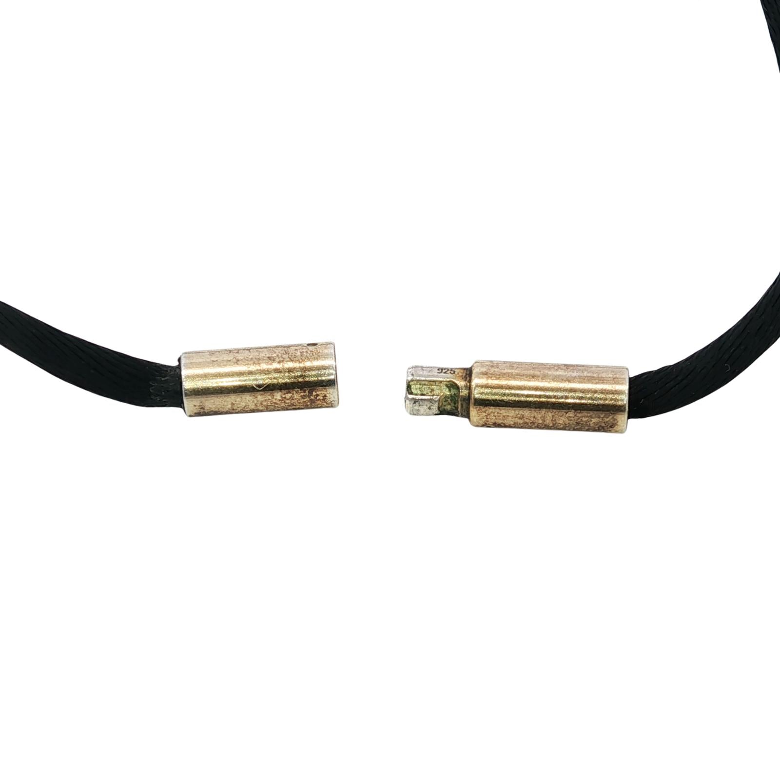 The pendant hangs from a sleek black cord, offering a modern contrast to the gold and diamonds. It’s an effortlessly chic combination that feels as at home with an evening dress as it does with a simple blouse.