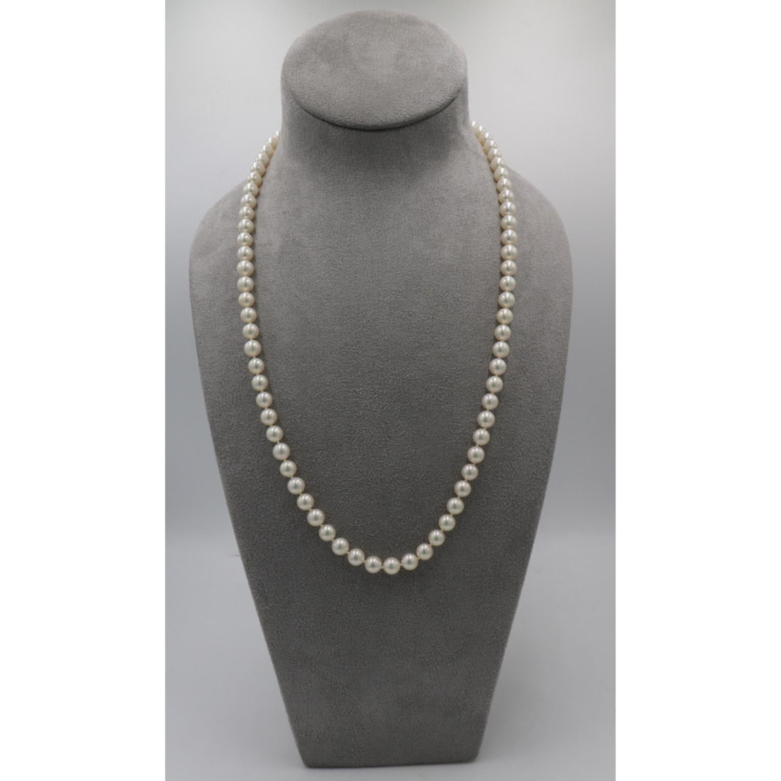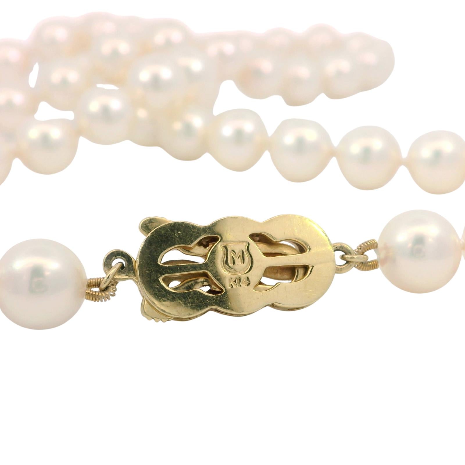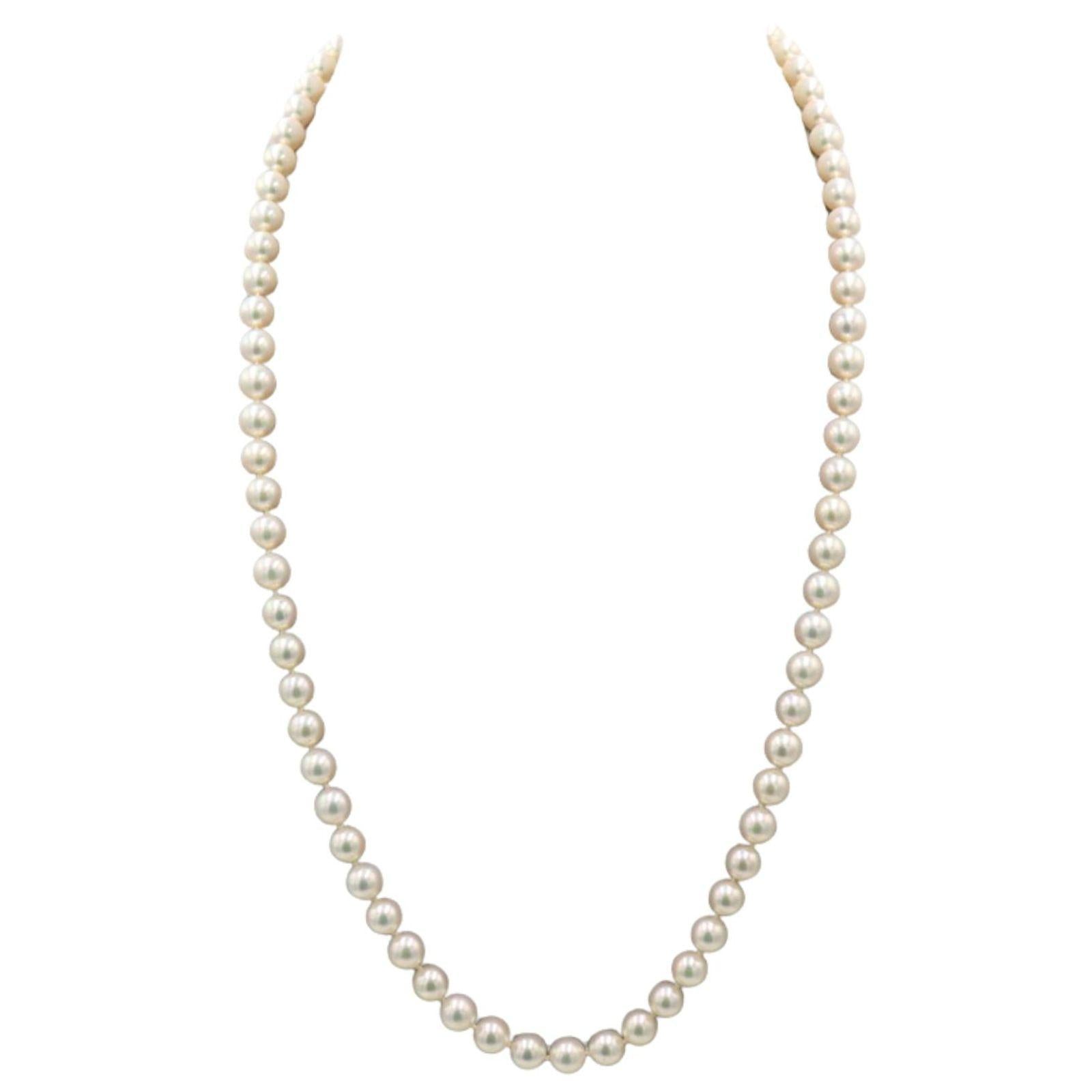 Vintage Mikimoto Pearl Strand Necklace 14K Yellow Gold 23.5" Length