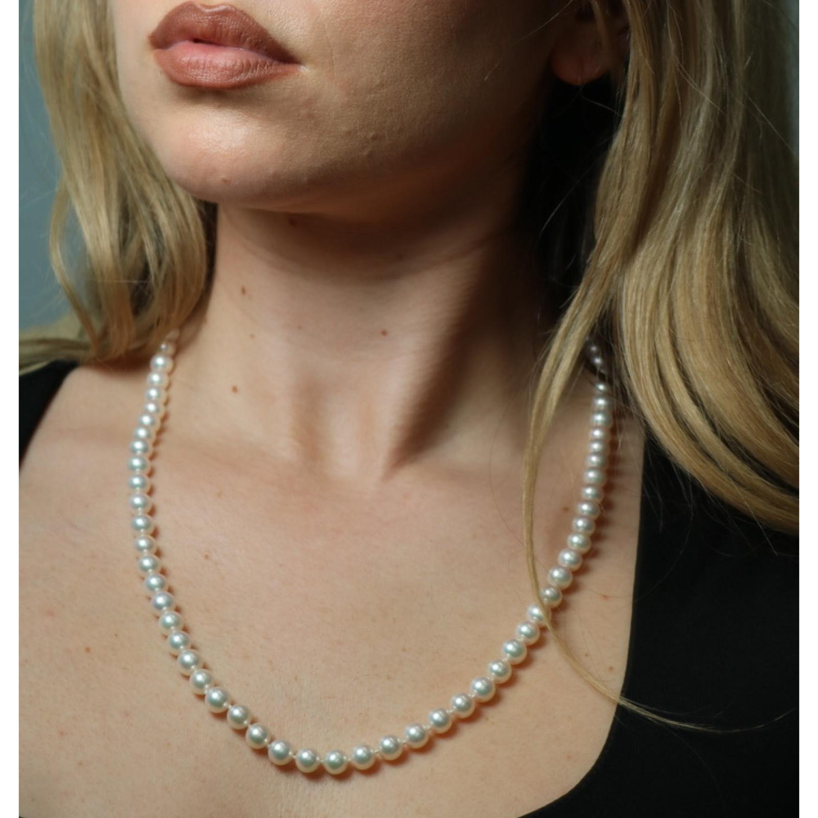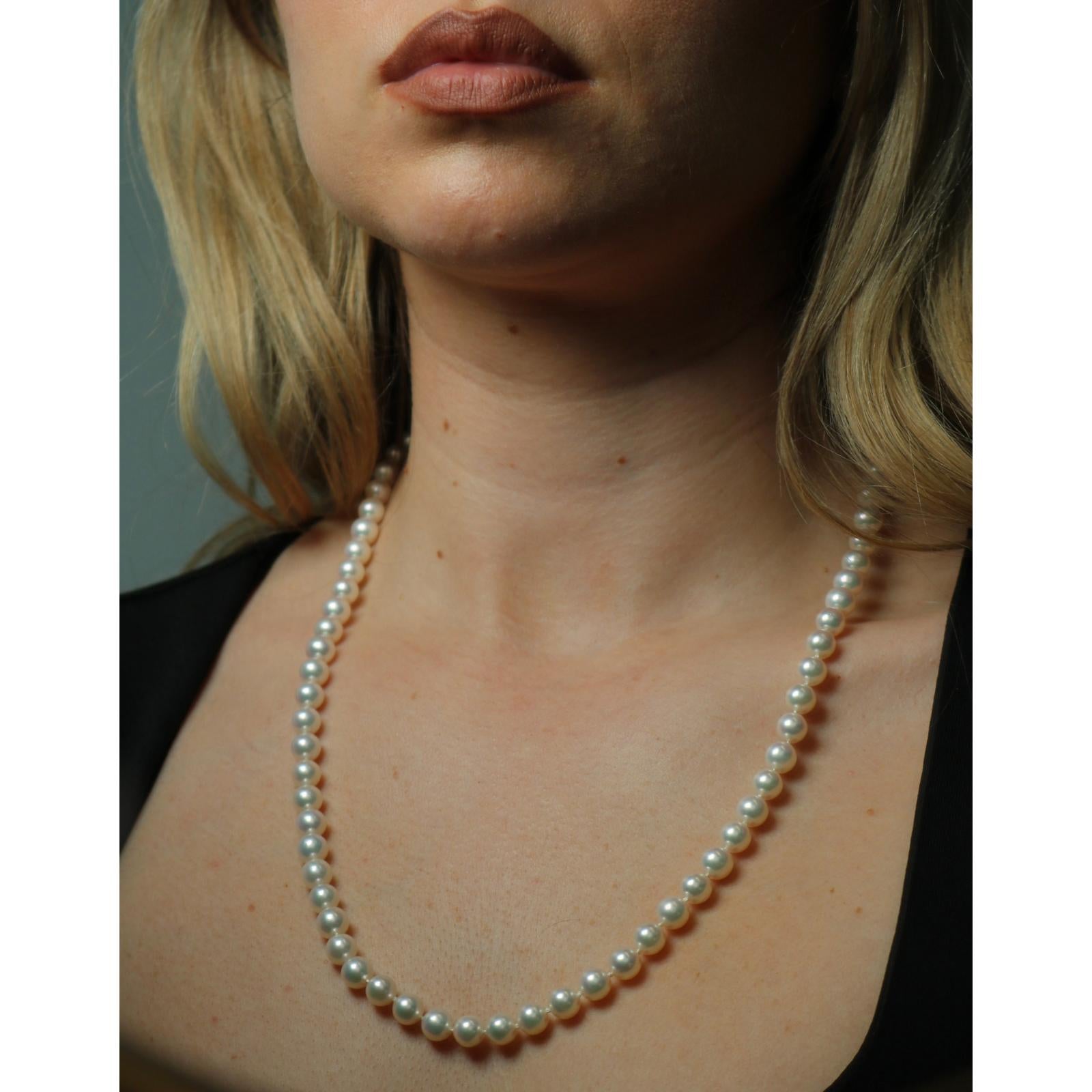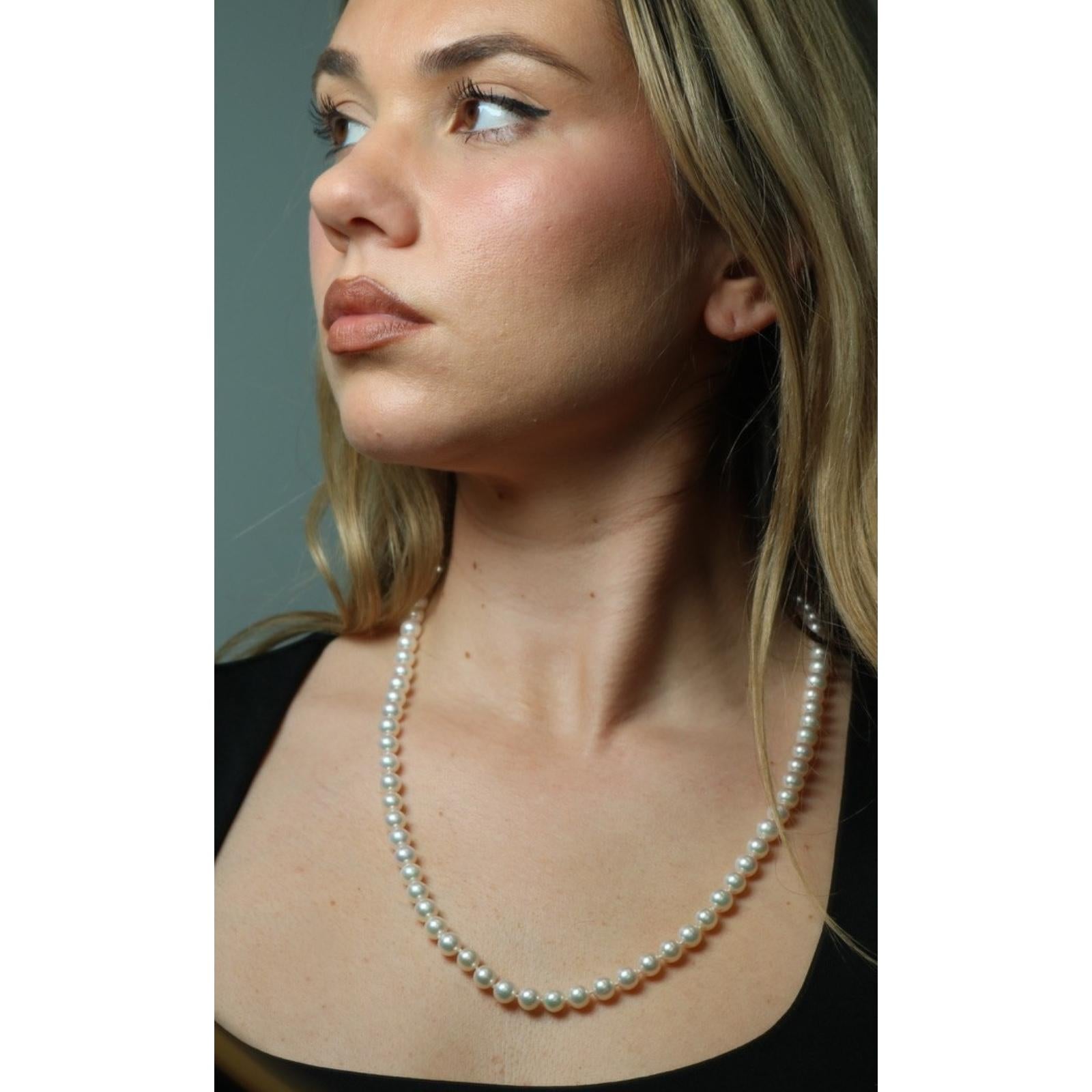 Vintage Mikimoto Pearl Strand Necklace 14K Yellow Gold 23.5" Length