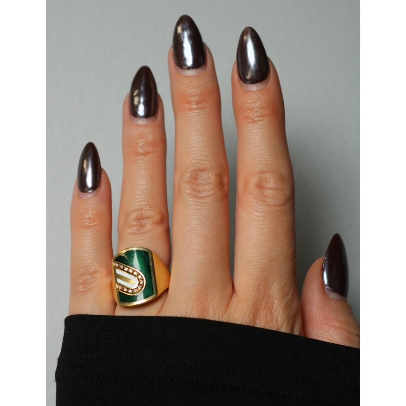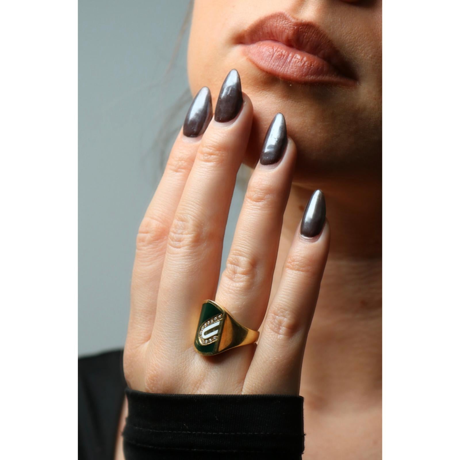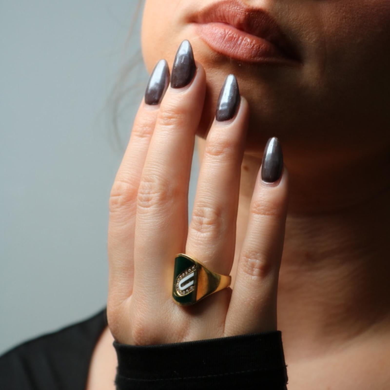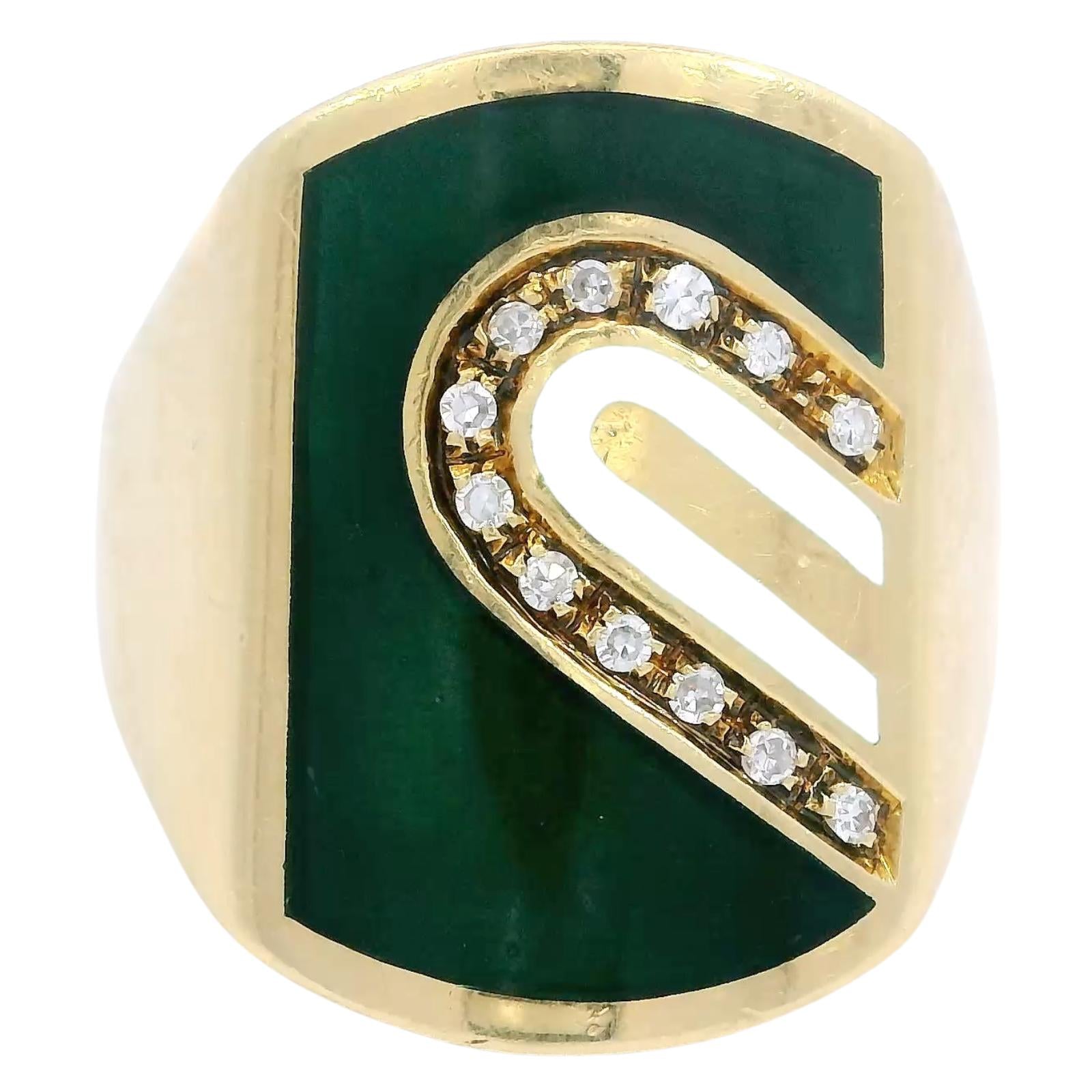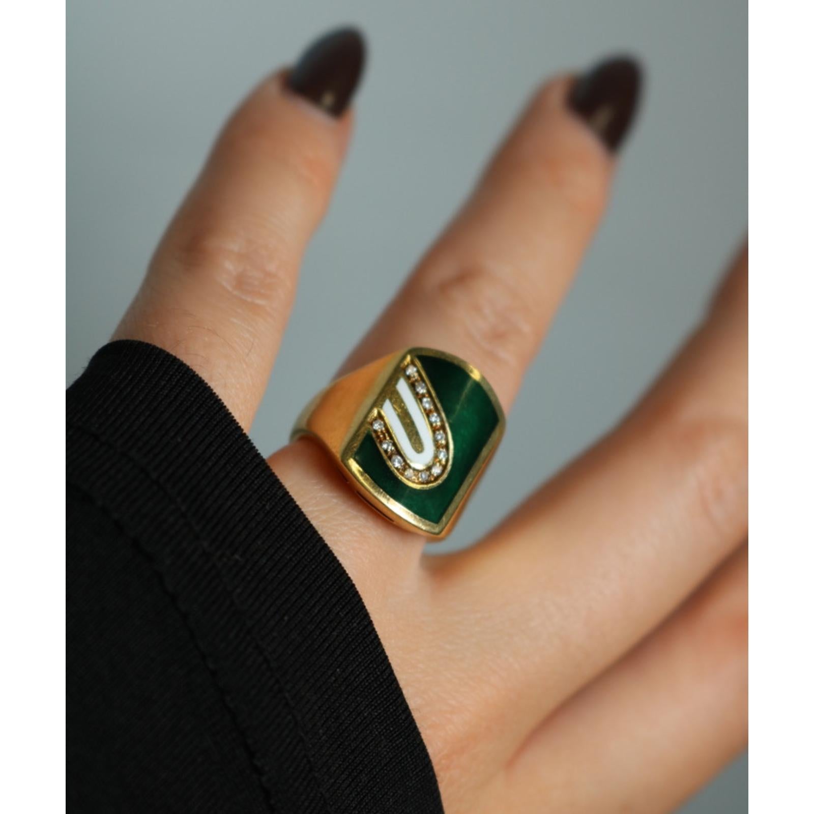 Cartier Diamond Enamel Ring 18K Yellow Gold Size 5.25 Cartier Italy