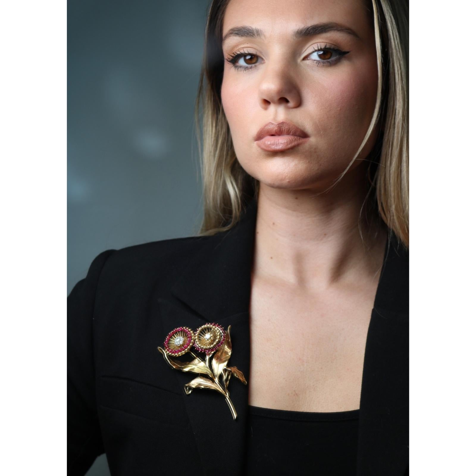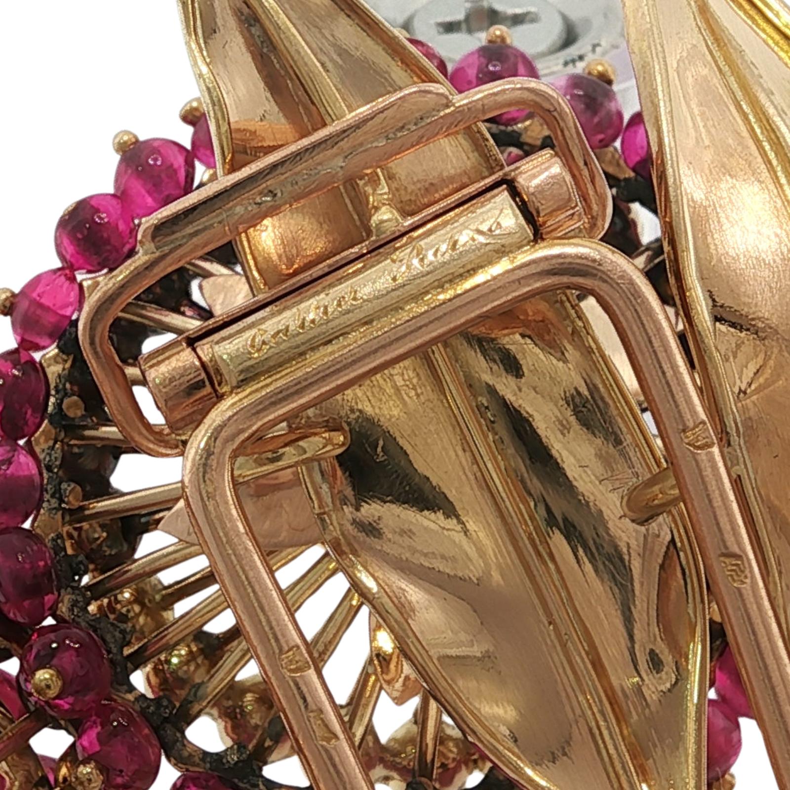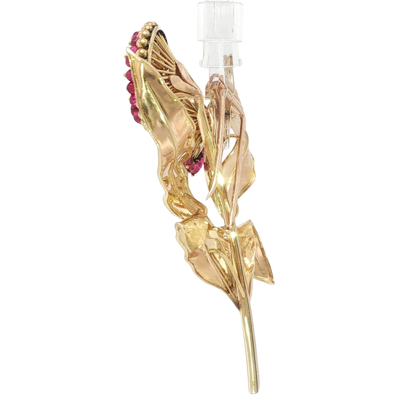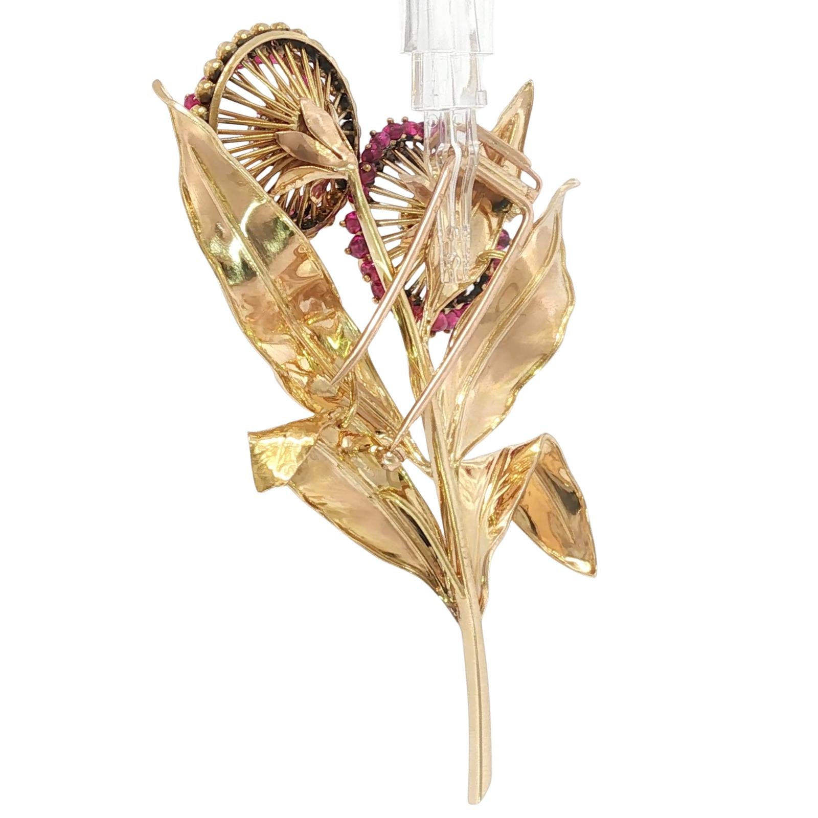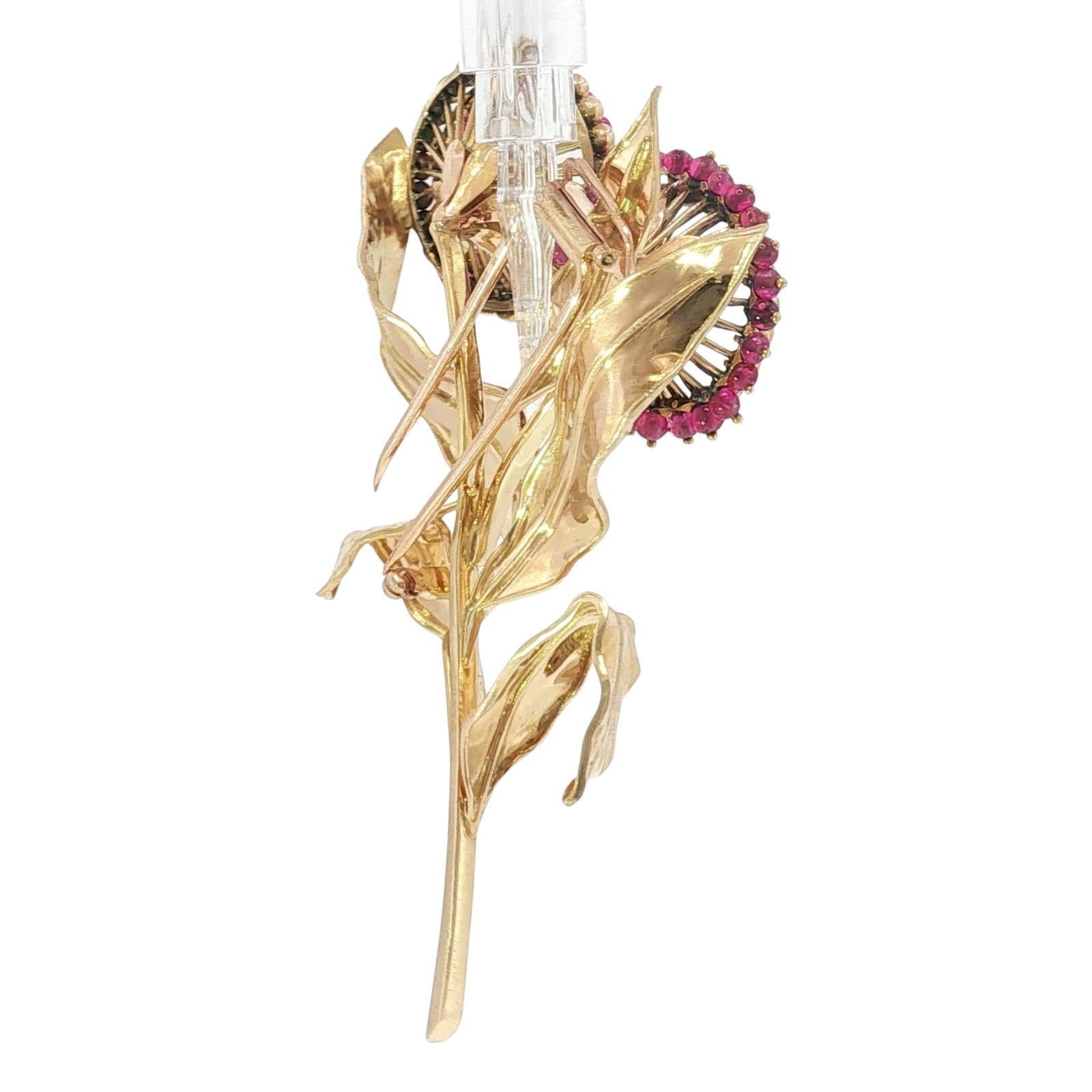 Cartier Paris Flower Brooch 18K Yellow Gold Ruby & European Cut Diamonds ~4.5ctw